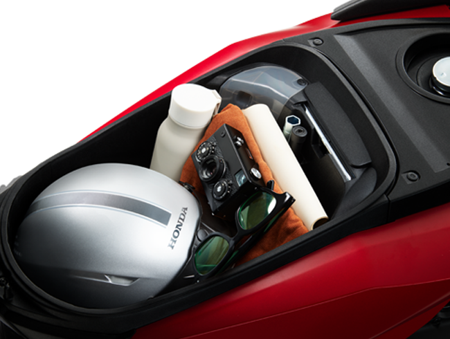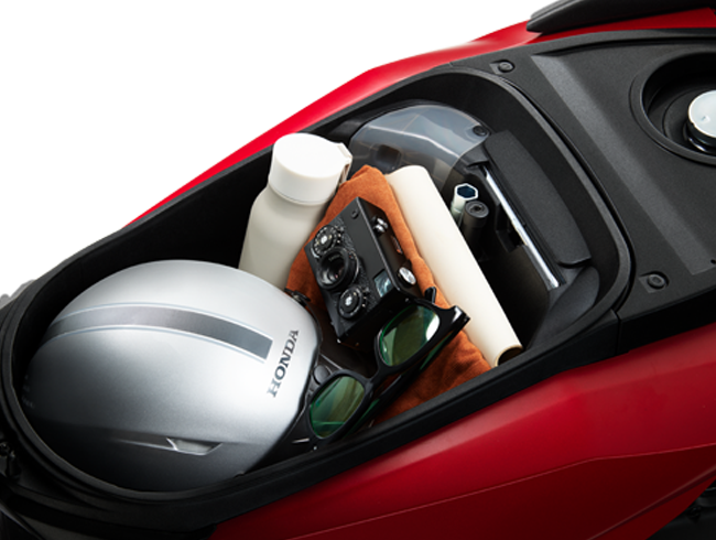 Hộc đựng đồ dung tích lớn với thể tích 17,9 lít cho phép chứa 1 mũ bảo hiểm nửa đầu cùng nhiều vật dụng cá nhân khác