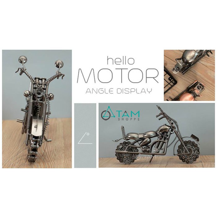 Mô hình chiếc xe máy mô tô bằng sắt phong cách hầm hố với nhiều chi tiết thủ công tinh xảo. Xe có chân chống đứng vững chãi. Bánh xe có thể di chuyển được. Thích hợp trưng bày tủ kệ, làm mô hình sưu tầm, đồ chơi thú vị cho trẻ.
