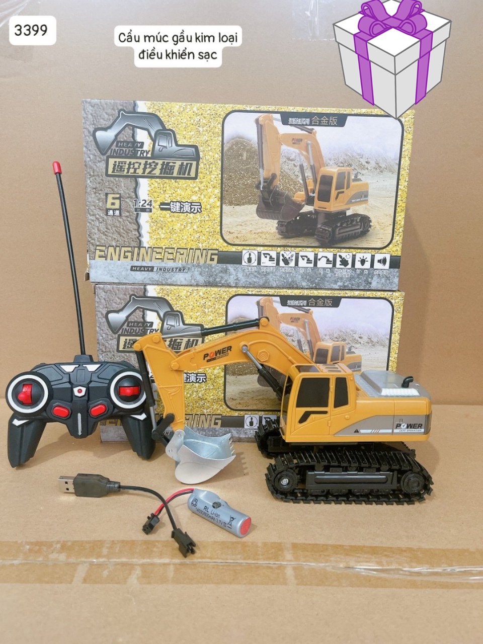 xe điều khiển từ xa sạc điện cầu múc bằng kiêm loại.