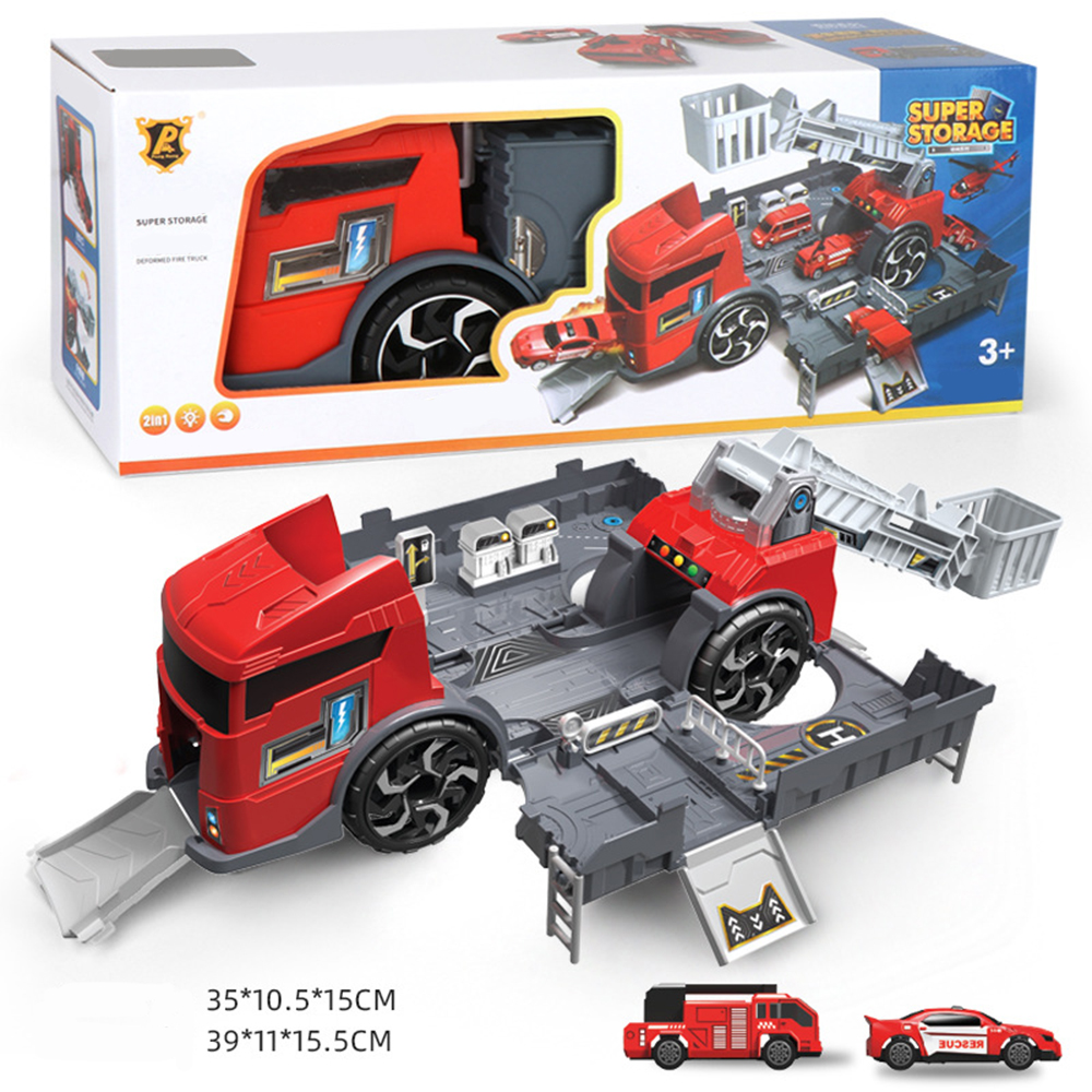 Bộ đỏ gồm 1 xe có cần cẩu to, 1 oto cảnh sát , 1 xe cứu hỏa, thanh trượt đi lên