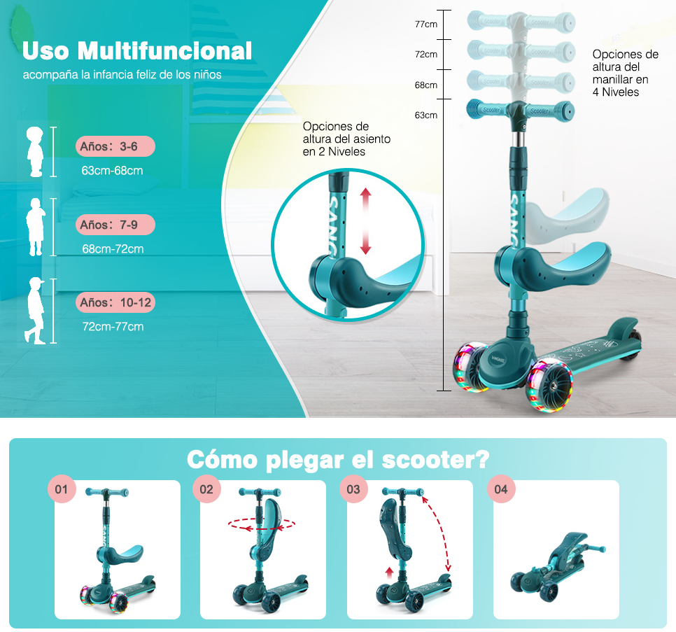 - Xe Scooter 3in1 Triple One Way cung cấp 3 nấc chiều cao cho trục lái, bố mẹ dễ dàng điều chỉnh chỉ với 2 thao tác đơn giản để chiều cao của xe luôn phù hợp với từng vóc dáng hay từng giai đoạn phát triển của bé, hỗ trợ bé một tư thế thoải mái và tự tin nhất khi vui chơi.