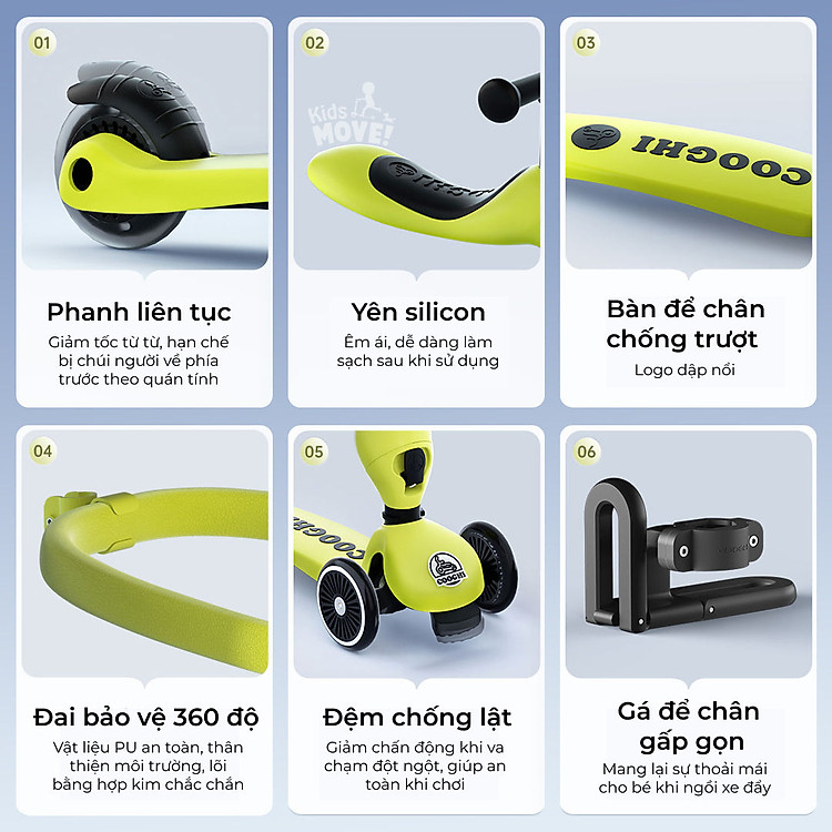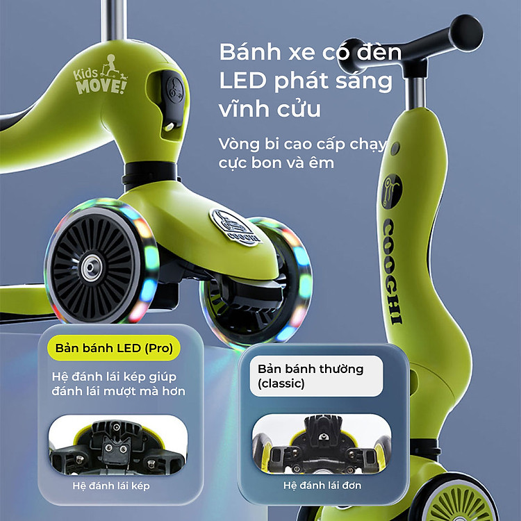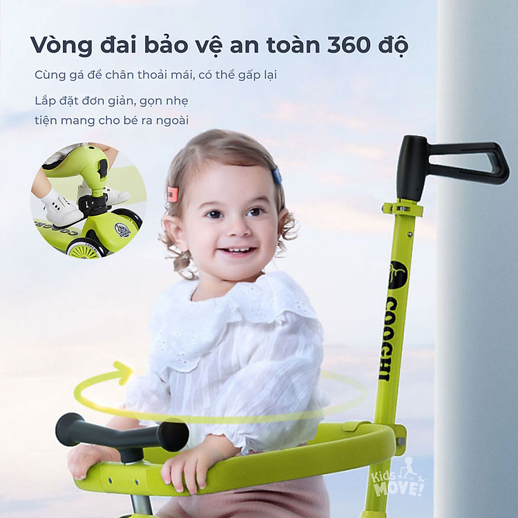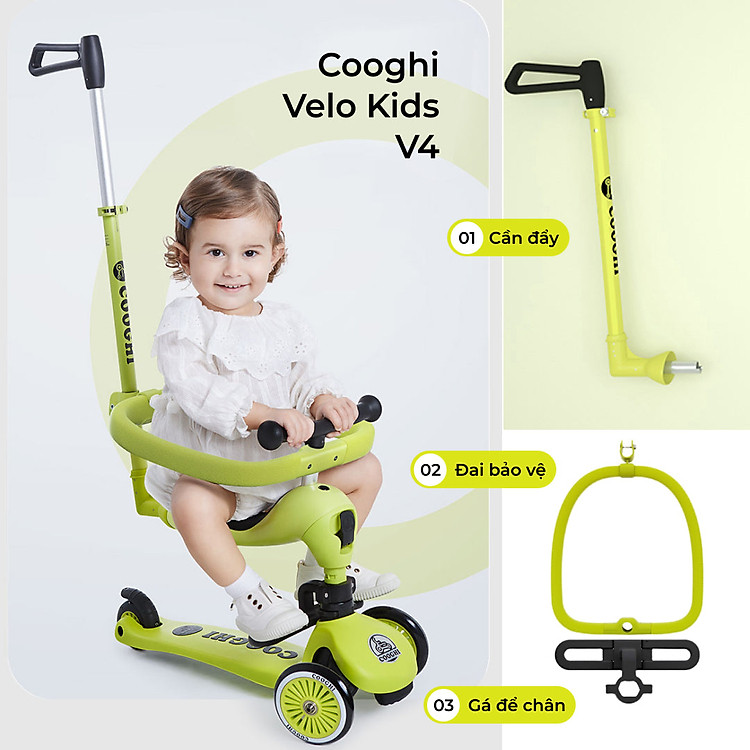 COOGHI đang là thương hiệu xe scooter cho bé nổi tiếng và được đông đảo phụ huynh, trẻ em ưa chuộng hiện nay bởi luôn mang đến những sản phẩm uy tín, chất lượng và an toàn. Đặc biệt, với mục đích hướng đến trẻ em, mang đến cho trẻ những gì tốt nhất, Cooghi không ngừng nâng cấp, đổi mới và thiết kế nhiều mẫu xe scooter đa năng cho bé cực kỳ tiện dụng. Xe trượt scooter đa năng 4 in 1 Velo Kids V4 là phiên bản mới ra mắt với nhiều cải tiến, ưu điểm vượt trội có thêm vòng đai và gá để chân phù hợp với trẻ trong giai đoạn mới lớn.