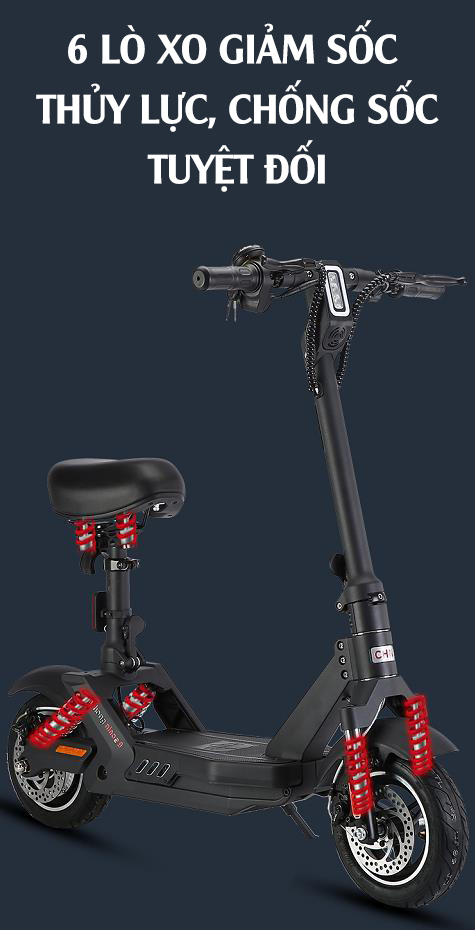 Phanh sau: phanh đĩa kép E-ABS. giảm xóc trước sau, phanh đĩa trước sau, lốp không săm chống cháy nổ