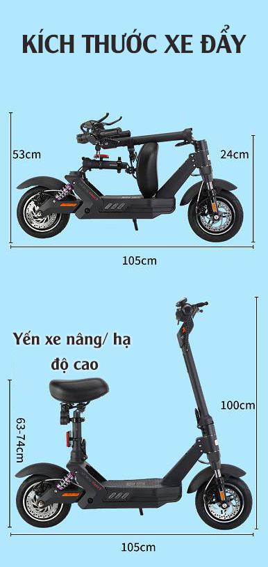 Xe điện Scooter được trang bị pin lithium 280Wh và động cơ 500W chỉ cần 5 giờ là sạc đầy và sử dụng được cho quãng đường 50km đối với người có cân nặng 150kg (Quãng đường đi sẽ chênh lệch tùy vào cân nặng của người sử dụng).