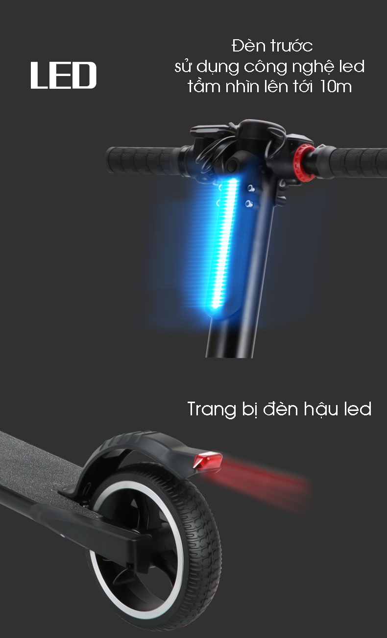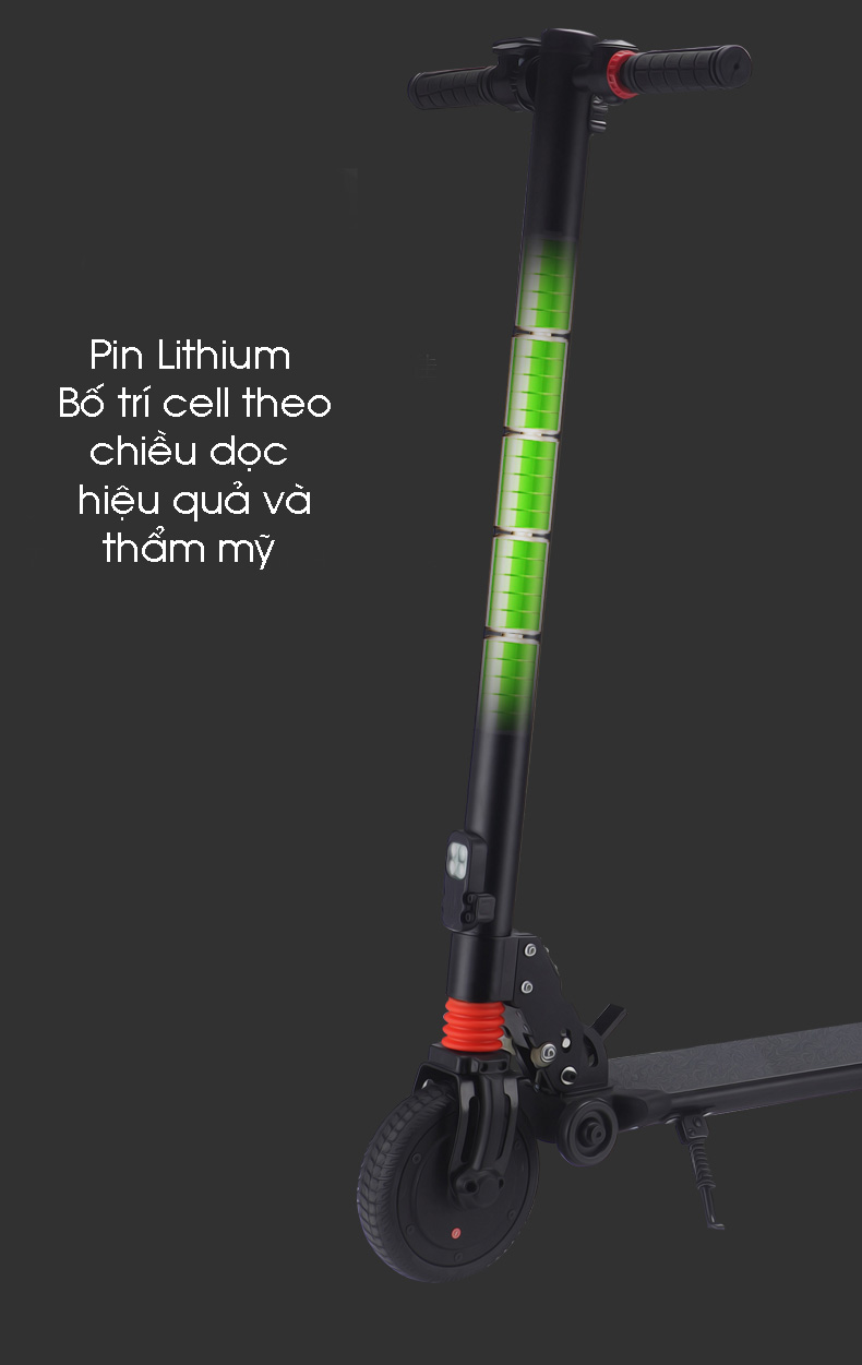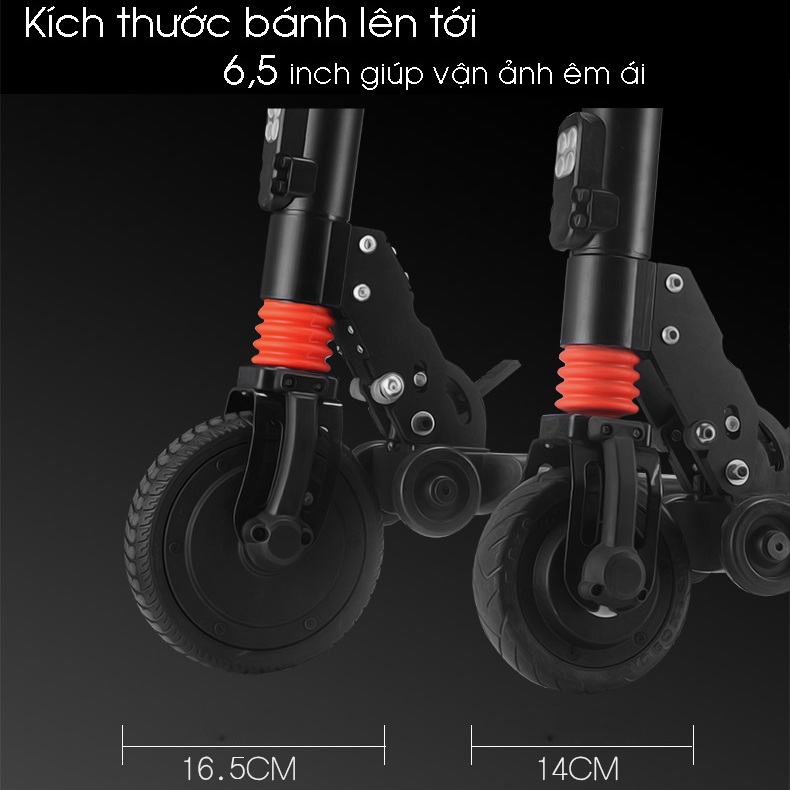 Kích thước lốp : bánh trước 6,5 inch, bánh sau 5,5 inch .