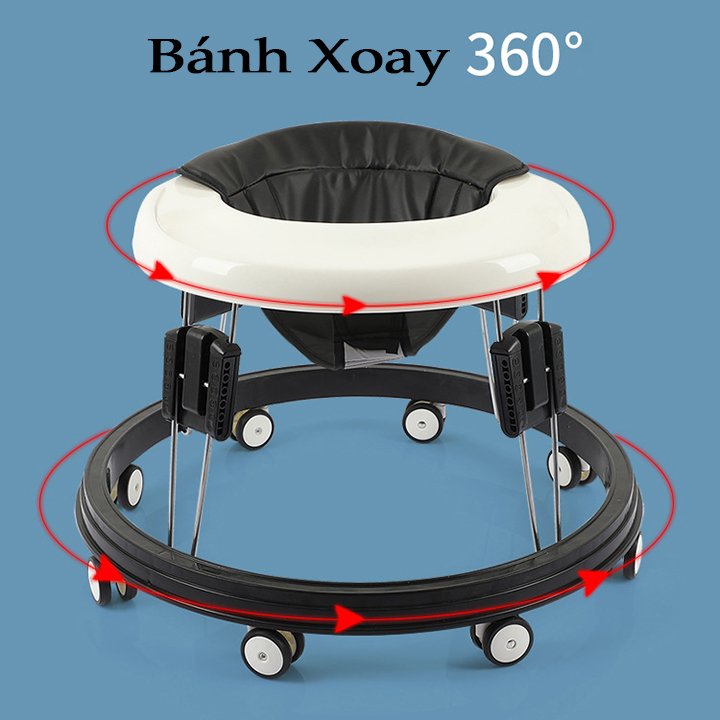 Thiết kế hình tròn thông minh, có thể gập gọn lại khi không sử dụng thao tác đơn giản chỉ trong 1 nốt nhạc. Đặc biệt phần đáy to hơn phần trên để tránh cho bé không bị va chân vào khi tập đi.