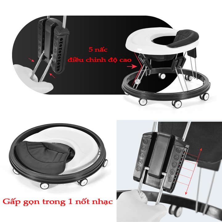 Siêu phẩm xe tập đi đa năng, nâng hạ 5 cấp độ. Xe điều chỉnh được 5 mức độ cao để phù hợp với chiều cao của từng bé.