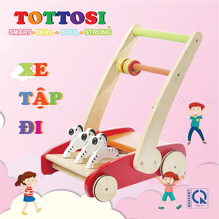 Đồ chơi xe tập đi của Tottosi với những hình động vật dễ thương như: Ngựa vằn