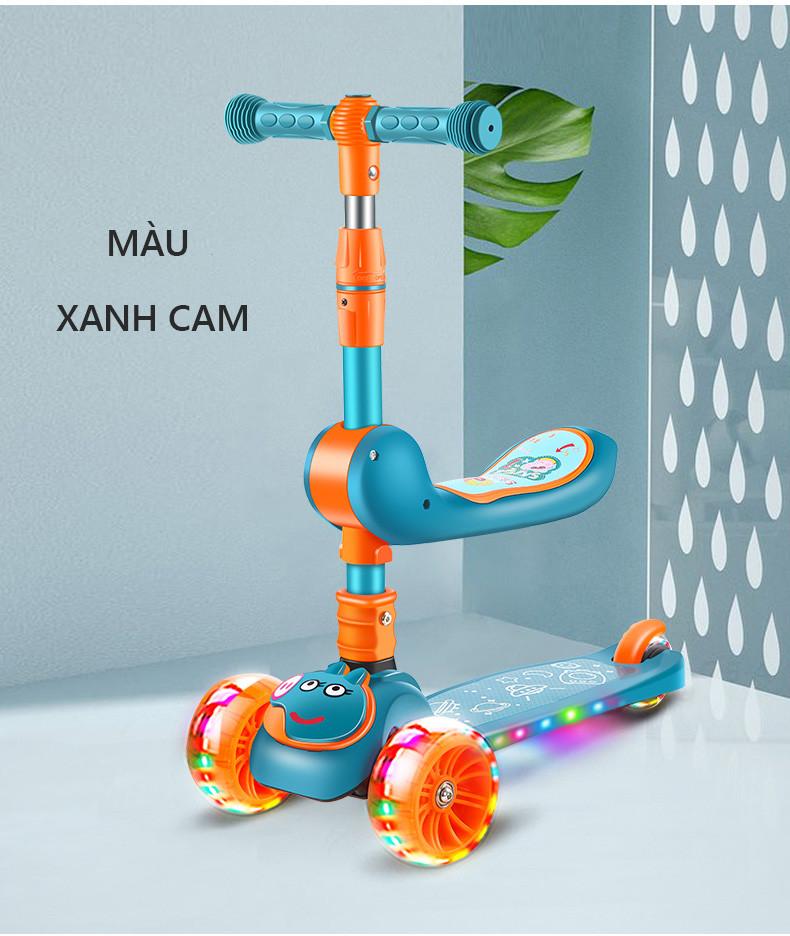 Xe scooter 3 in 1 có nhạc - đèn- chòi chân là một món quà ý nghĩ và tuyệt vời nhất mà các cha mẹ dành cho các bé. Khung xe được làm từ hợp kim chống gỉ chắc chắn, tay cầm có thể điều chỉnh theo chiều cao của từng bé. Bánh xe phát sáng và có âm thanh khi bánh lăn. Tay cầm với chất liệu nhựa mềm an toàn, đàn hồi êm ái và chống trơn trượt cao.