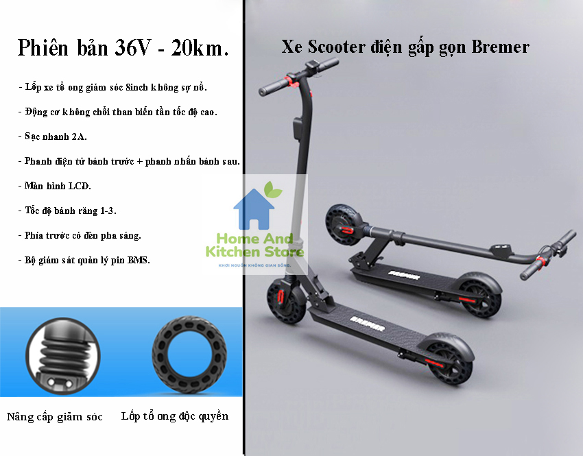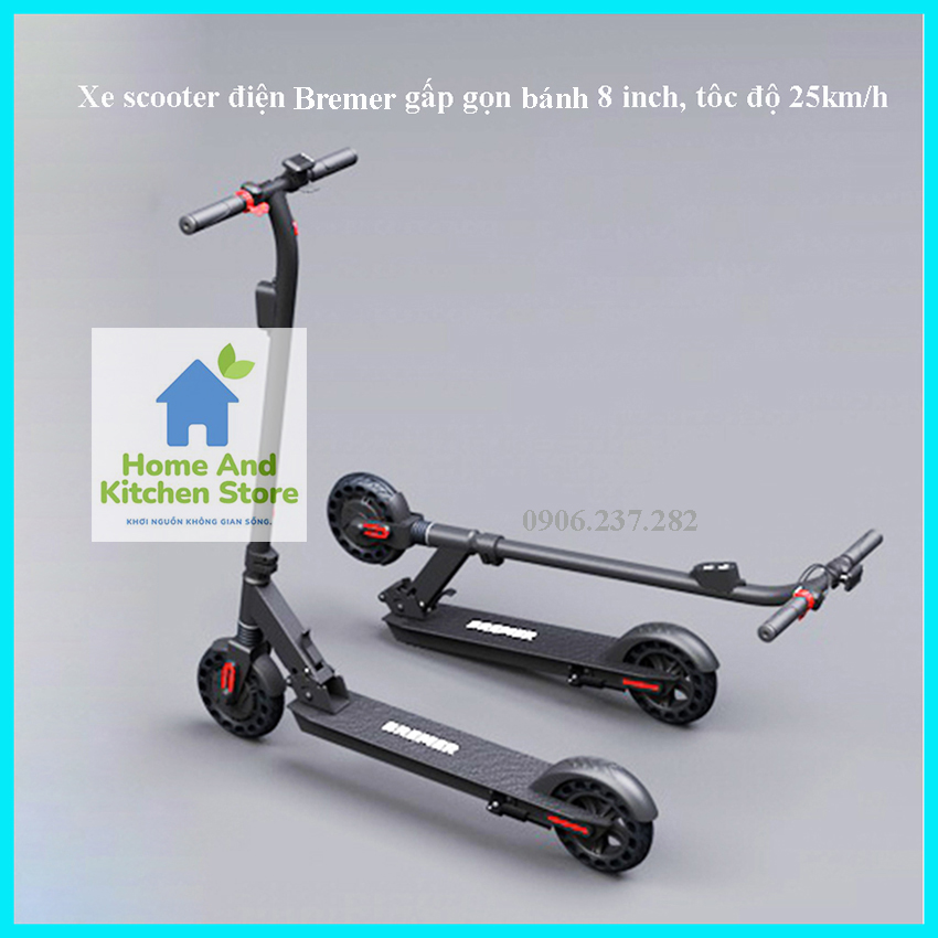 Xe trượt scooter điện xếp gọn Bremer tốc độ 25km/h dành cho thiếu niên, người đi làm - xe scooter điện người lớn