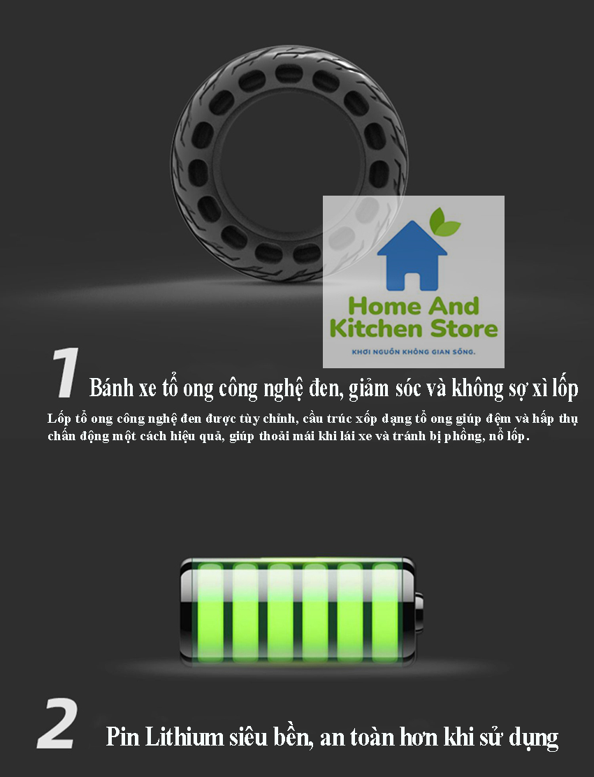 Mọi tính năng được tối ưu hóa để đáp ứng nhu cầu hàng ngày của bạn. Xe có bảo vệ an toàn khởi động. Sau khi bật nguồn, bạn cần trượt đà nhẹ bằng chân trước rồi mới có thể ga . Không nên kéo ga và phanh của người mới bắt đầu để tránh bị ngã.