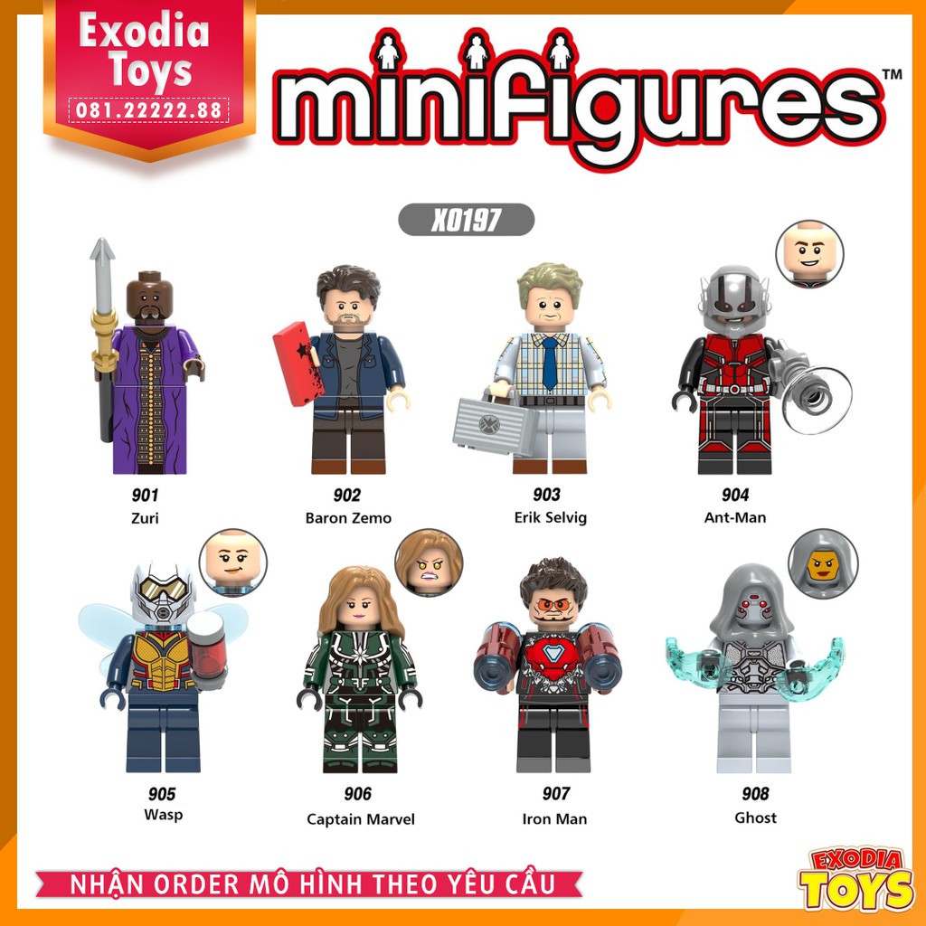 XINH 901 - Zuri XINH 902 - Baron Zemo XINH 903 - Erik Selvig XINH 904 - Ant-Man XINH 905 - Wasp XINH 906 - Captain Marvel XINH 907 - Iron Man XINH 908 - Ghost