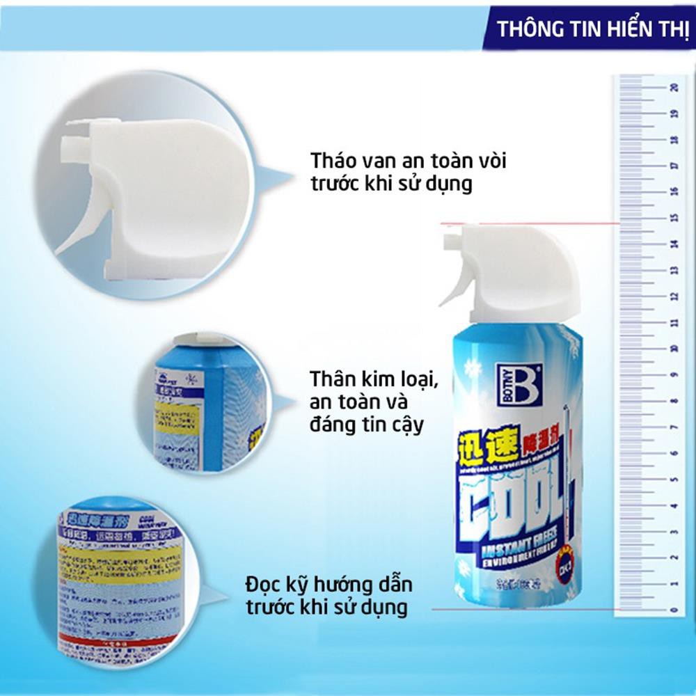 Nhà cửa & Đời sống > Chất khử mùi, làm thơm nhà > Chất khử mùi, làm thơm || Xịt làm mát lạnh nhanh tức thời cho Xe hơi - Yên xe máy - Cơ thể dạng bình xịt 180ml mùi bạc hà nhẹ