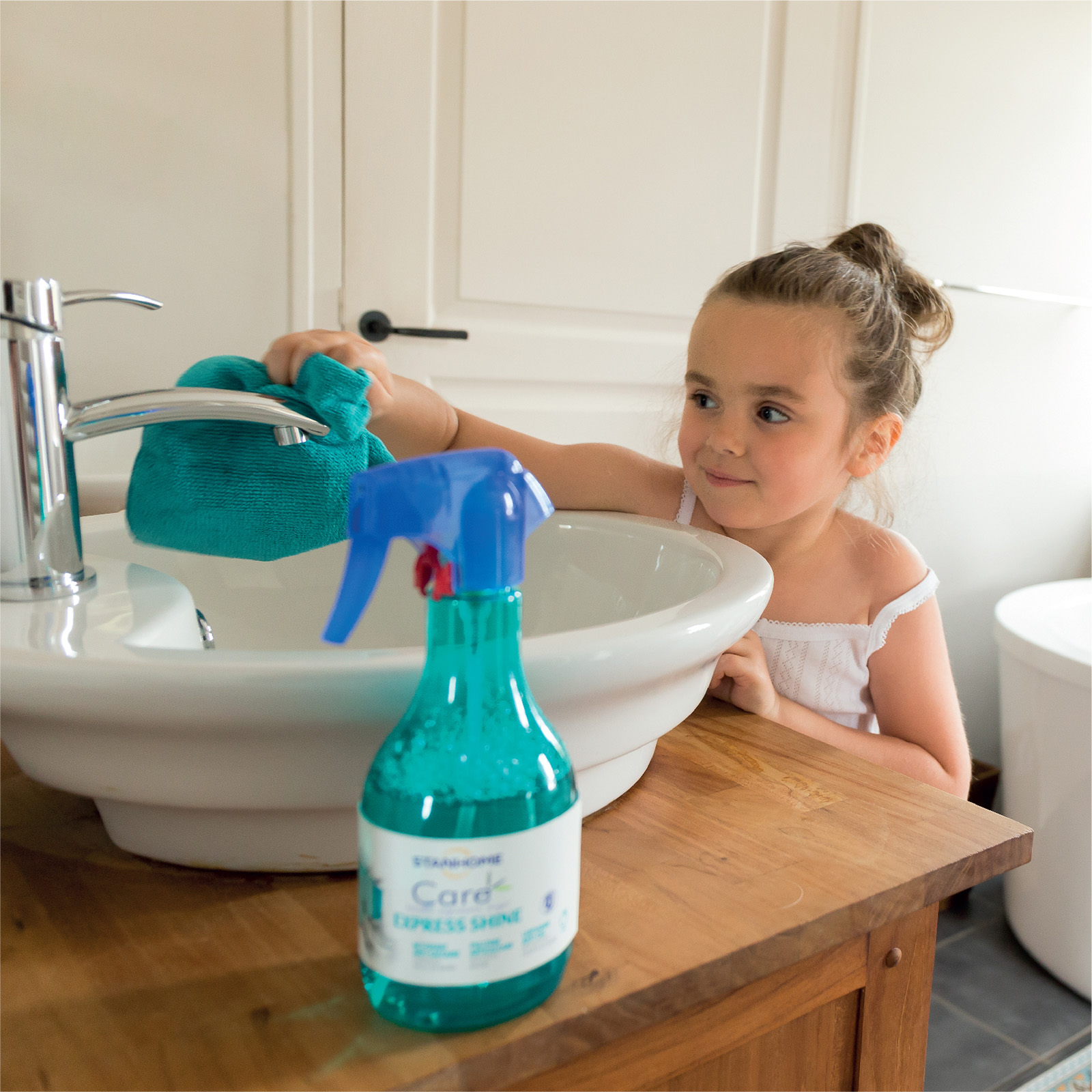 EXPRESS SHINE CARE 500ml loại bỏ nước cứng và mọi vết bẩn trên các bề mặt nhà tắm chỉ trong vòng một phút