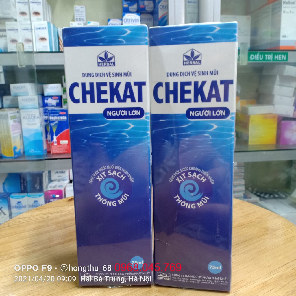 Thành phần: Người lớn: Dung dịch vệ sinh mũi Chekat chứa muối, nước khoáng (chứa nhiều khoáng chất như Cu, I, Mg, Mn, Zn,…), hương chanh tự nhiên, với nồng độ tối ưu cho sức khỏe niêm mạc. Trẻ em: Dung dịch vệ sinh mũi Chekat chứa muối, nước khoáng (chứa nhiều khoáng chất như Cu, I, Mg, Mn, Zn,…), hương cam tự nhiên, với nồng độ tối ưu cho sức khỏe niêm mạc.