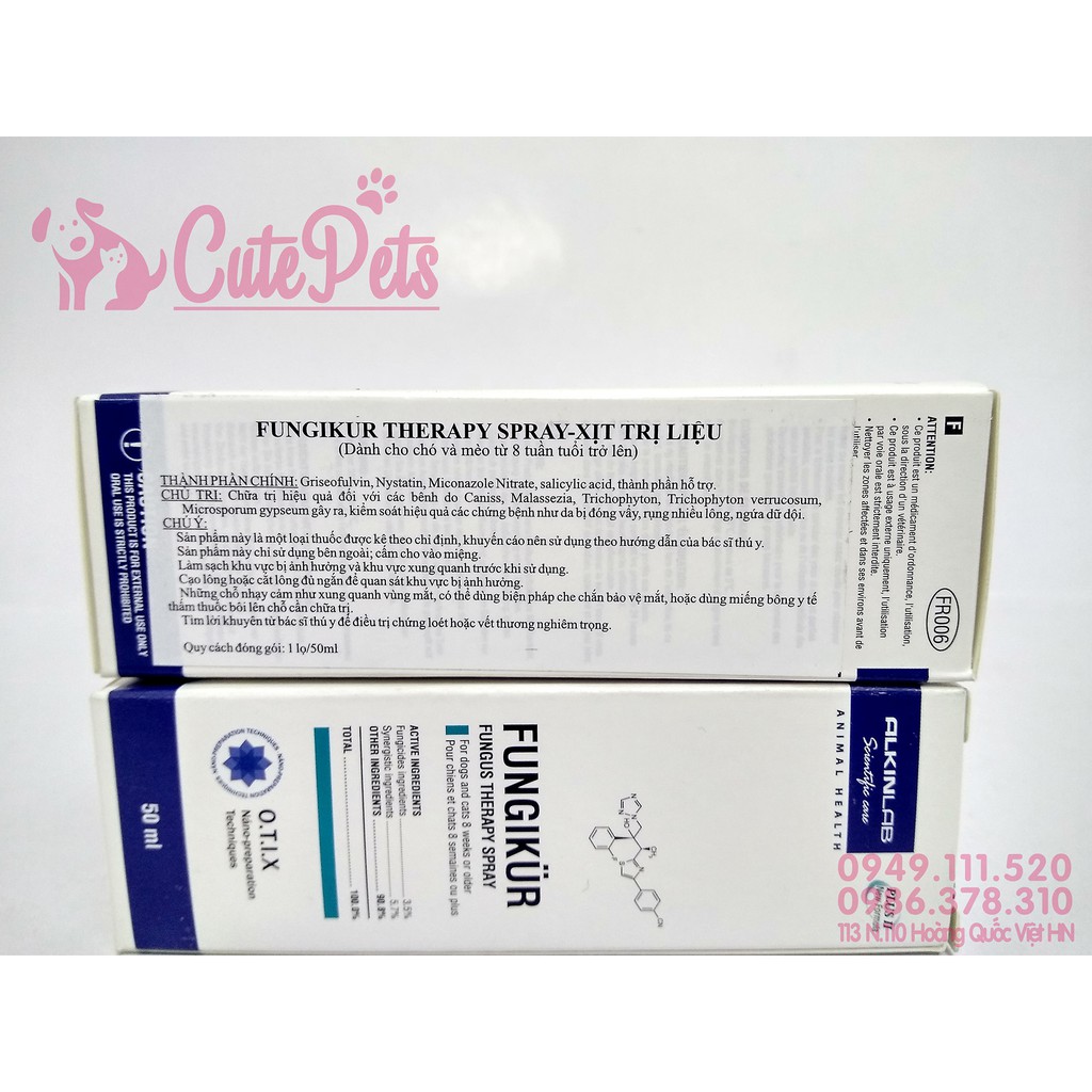 Giới thiệu Xịt nấm cho chó mèo Alkin Fungikul 50ml cho thú cưng - CutePets phụ kiện chó mèo Pet shop Hà Nội
