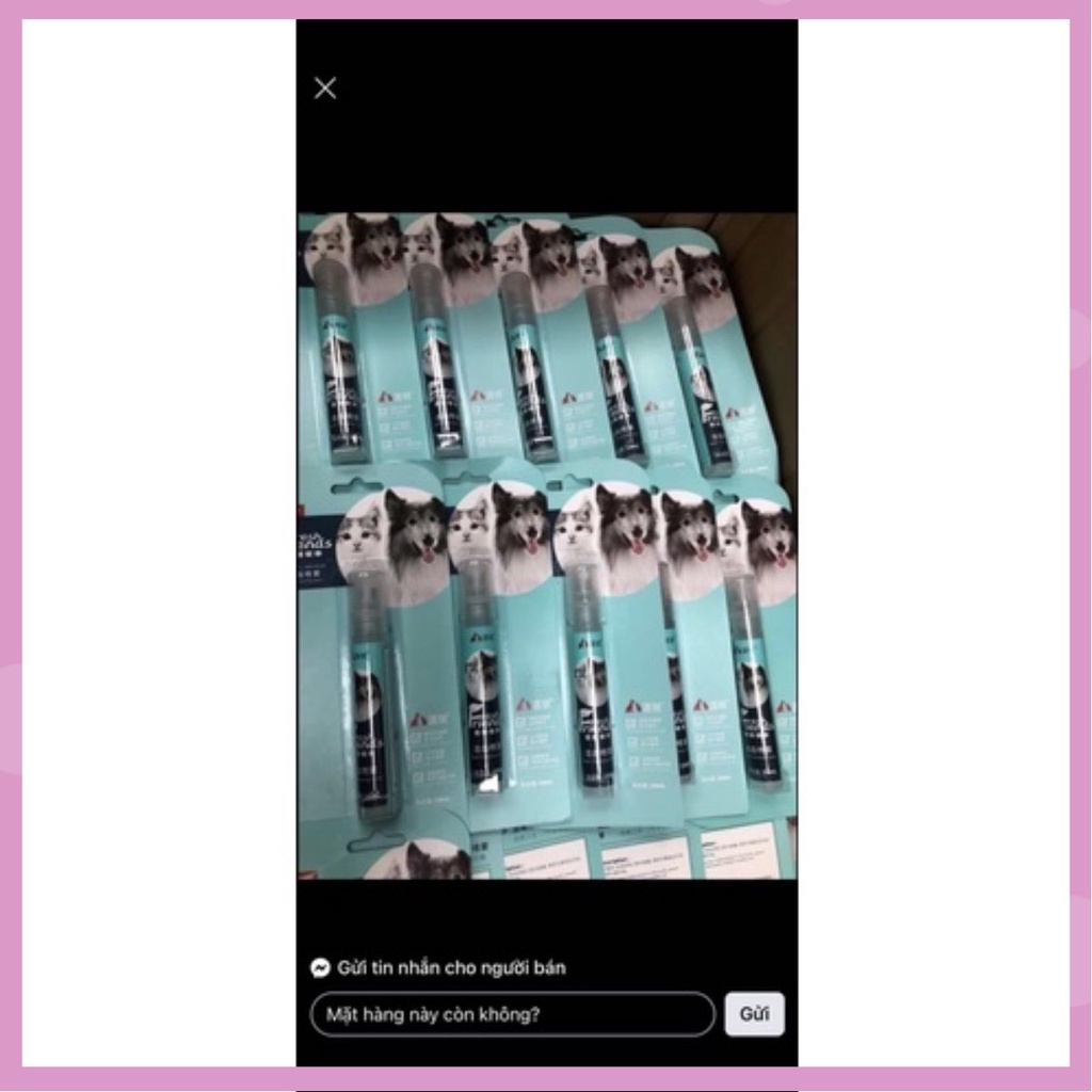 THÔNG TIN SẢN PHẨM Xịt thơm miệng cho chó mèo dùng để chăm sóc răng miệng hàng ngày cho vật nuôi của bạn. Có khả năng loại bỏ các mảng bám trên răng, đề phòng và chữa trị các bệnh liên quan đến răng, đặc biệt là nướu chân răng ở chó mèo.