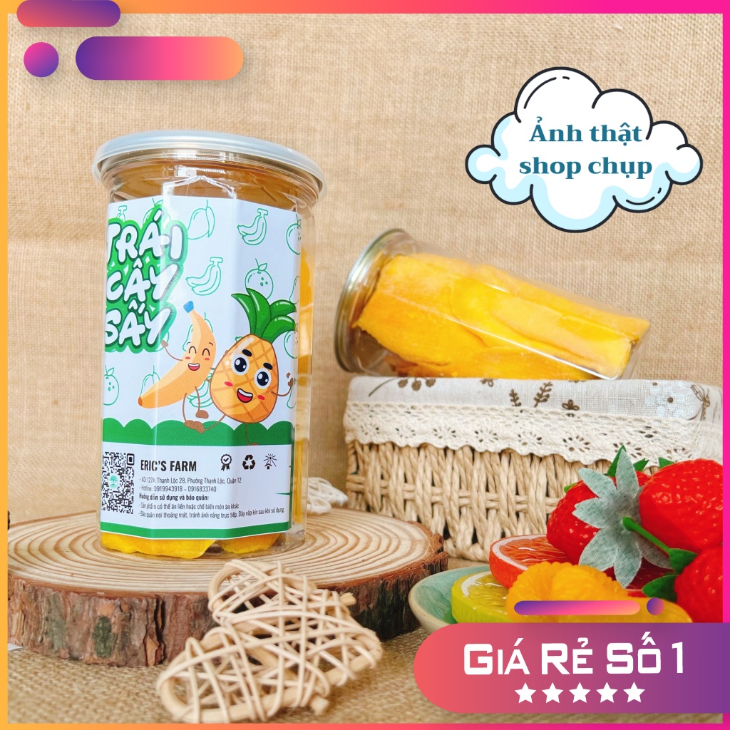 💥 Xoài sấy dẻo tự nhiên với công nghệ sấy lạnh giữ được hương vị và màu sắc tự nhiên của trái xoài mà miếng xoài ko hề bị khô cứng 🤤 Hương vị: chua ngọt vừa ăn, xoài sấy dẻo thơm ngon, miếng xoài mỏng ko bị xơ sợi dắt răng khi ăn ⭐️ Xoài dẻo là món quà biếu tặng đẹp mắt sang trọng và ngọt ngào ngày tết ------- - Xuất xứ: Việt Nam - Đóng gói: Hủ PET 300 Gram (CÂN ĐỦ TRỌNG LƯỢNG - ẢNH THẬT 100%) - HDSD: Dùng trực tiếp khi mở hộp. Tránh ánh nắng trực tiếp, bảo quản nơi thoáng mát ------ ✅ LƯU Ý: Khi bạn gặp VẤN ĐỀ về sản phẩm, xin đừng vội ĐÁNH GIÁ Shop, hãy liện hệ với chúng tôi để được hỗ trợ một cách tốt nhất. ✅ Chúc các bạn có những trải nghiệm tuyệt vời cùng sản phẩm Xoài sấy dẻo không đường Eric's Farm 300g ====================== 🏫 Eric's Farm là thương hiệu đặc sản Đà Lạt uy tín, cung cấp các nông sản thực phẩm và quà tặng chất lượng cao, an toàn, đẹp mắt với giá cả phải chăng và dịch vụ hài lòng. ----------- 🏫 ERIC'S FARM - SỈ & LẺ ĐẶC SẢN ĐÀ LẠT - Hotline: 0919943918 - 0916833740 - Địa chỉ: 127A Thạnh Lộc 28, Phường Thạnh Lộc, Quận 12, TP.HCM