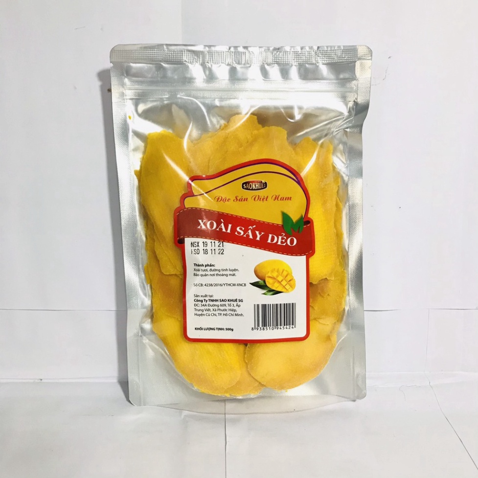 Xoài sấy dẻo Sao Khuê hàng xuất khẩu đặc sản ngon THÔNG TIN SẢN PHẨM - #Xoài được sấy theo phương pháp SẤY LẠNH nên miếng xoài vẫn giữ đc vị ngọt thanh, chua nhẹ cũng như hương vị đặc trưng của trái xoài tươi. - Và trên hết xoài là một loại trái cây chứa nhiều canxi rất tốt cho cơ thể đặc biệt là các mẹ bầu. - Dù đã đc sấy nhưng vẫn giữ được toàn bộ vitamin trong quả xoài nên rất tiện cho cả nhà mua để dùng ăn dần. Đặc biệt là các mẹ bầu đang trong thời kì nghén hoặc muốn bổ sung canxi cho con theo đường ăn uống 👍🏻 - #Xoài_sấy_dẻo không quá khô, dẻo dẻo, dai dai, vẫn giữ đc màu vàng tự nhiên của trái xoài, không có chất bảo quản nào khác. - Xoài sấy dẻo bên mình được sản xuất theo dây chuyền công nghệ hiện đại, đảm bảo chất lượng và hương vị thơm ngon, an toàn cho mọi người sử dụng. ✅ CÁCH BẢO QUẢN - Quy cách đóng gói: Đóng gói túi zip bạc 500 gram, có tem nhãn. - Bảo quản: nơi khô ráo, thoáng mát, sạch sẽ và tránh ánh nắng trực tiếp mặt trời. - Hạn sử dụng : 12 tháng kể từ ngày đóng gói