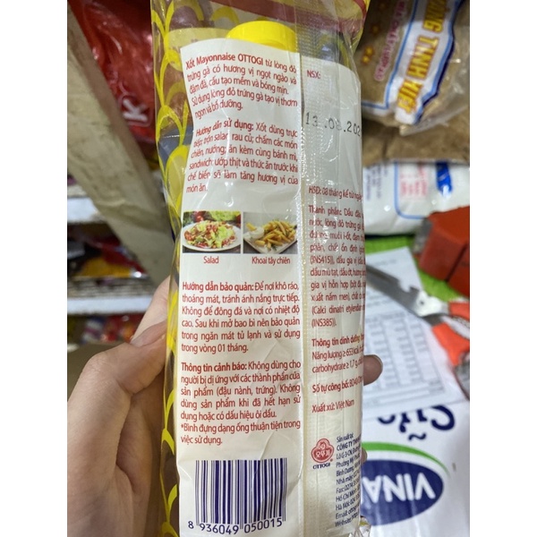 THÔNG TIN SẢN PHẨM Thành phần: dầu đậu nành, trứng gà, giấm, đường, muối, protein đậu nành, chất tăng mùi,... Trọng lượng: 240g Bảo quản: nơi thoáng mát, tránh ánh nắng mặt trời Hạn sử dụng: 8 tháng kể từ ngày sản xuất in trên bao bì sản phẩm