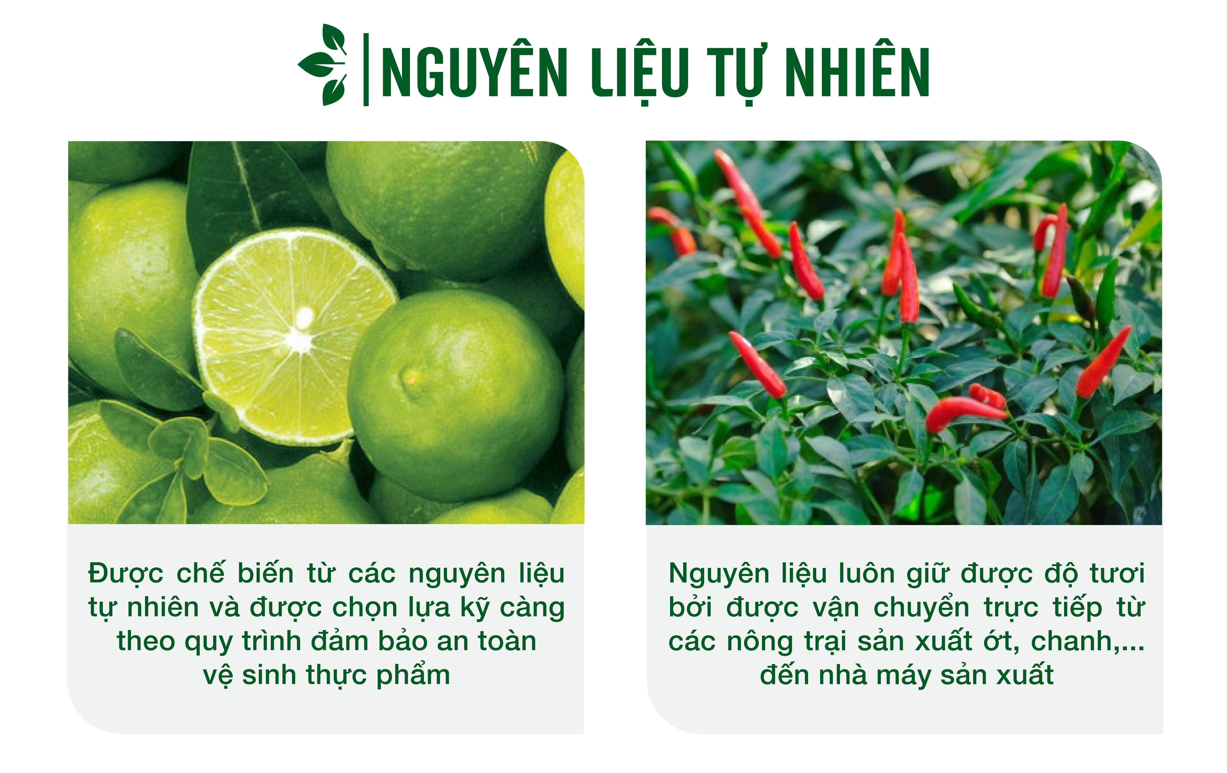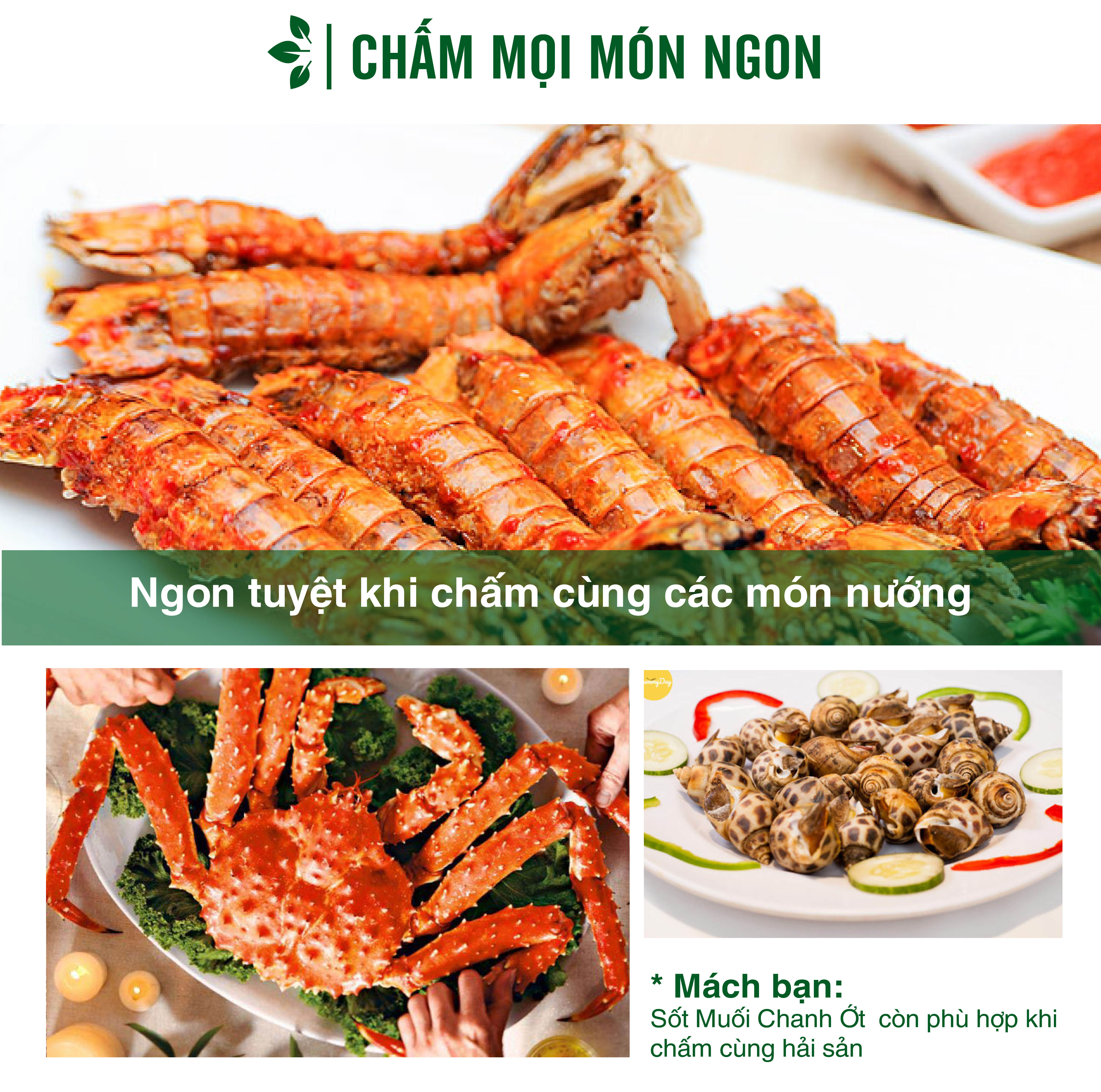 Một trong những loại sốt chấm ngon nhất không thể không nhắc đến muối chanh ớt. Sốt Muối Chanh Ớt Tinh Nguyên được chế biến từ các nguyên liệu tự nhiên và được chọn lựa kỹ càng để cho ra đời loại sốt chấm sánh đặc đậm vị chua cay, mặn ngọt.