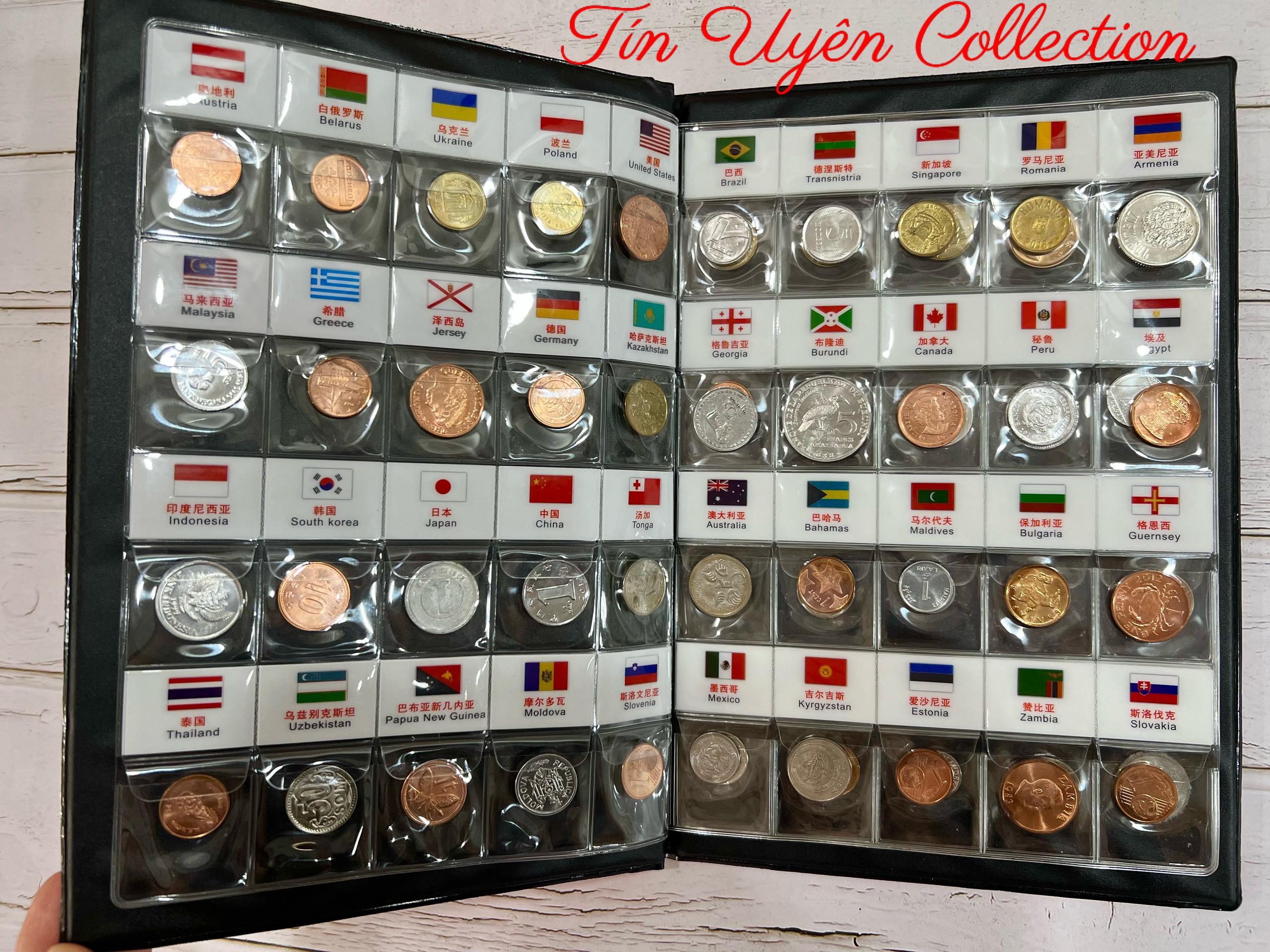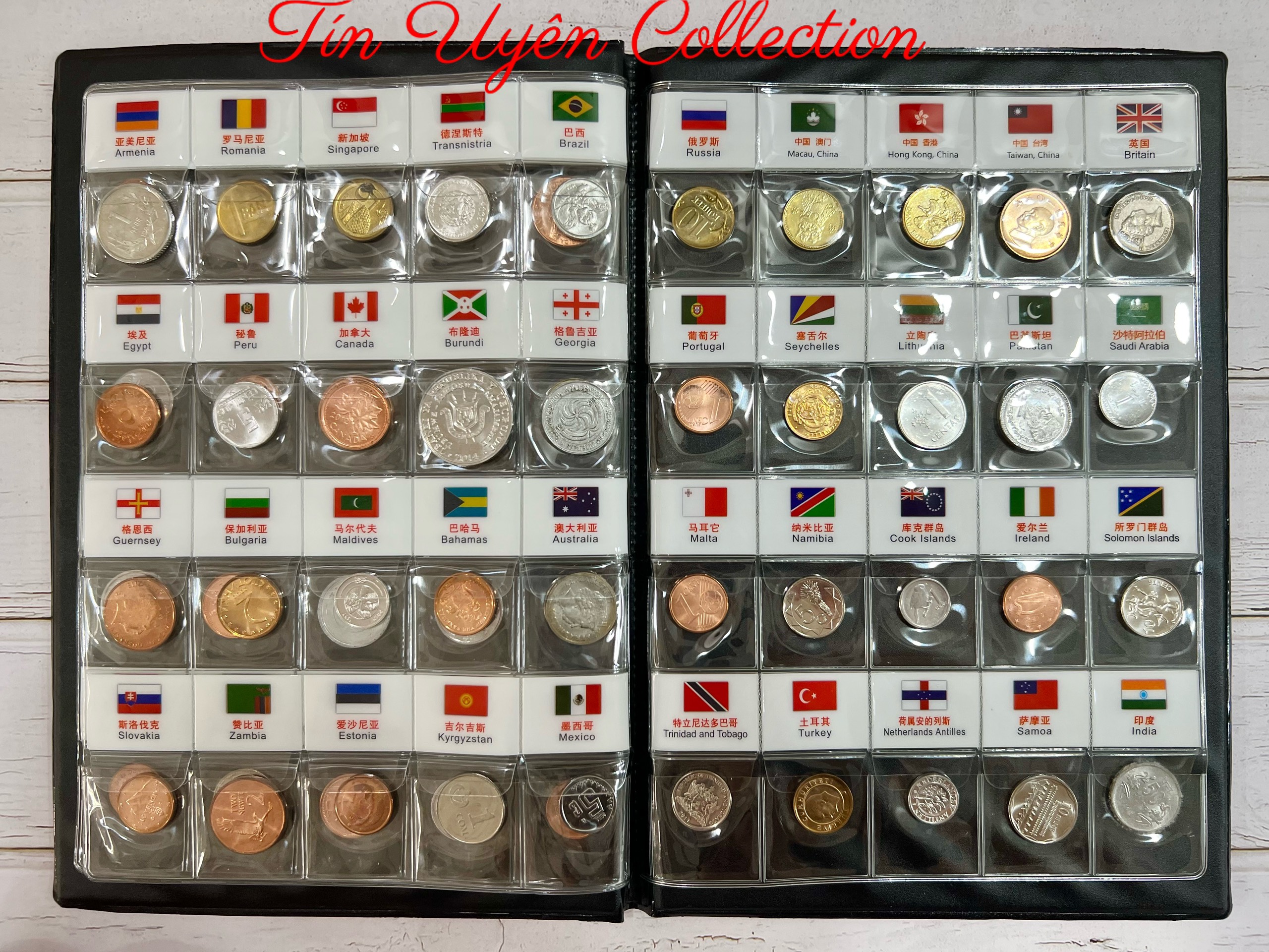 Model | Bộ Xu Quốc Tế 60 Nước 60 Xu khác nhau kèm Cờ và Album sưu tầm biếu tặng độc đáo |