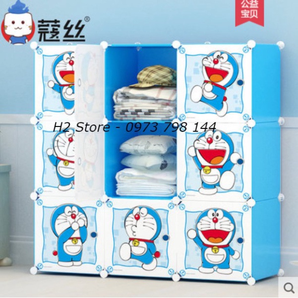 Nhà cửa & Đời sống > Nội thất > Tủ quần áo || XƯỞNG TỦ NHỰA LẮP GHÉP 9 Ô XANH DƯƠNG HÌNH NGỘ NGHĨNH (CỬA DOREAMON) ĐỂ QUẦN ÁO ĐA NĂNG THÔNG MINH CHO TRẺ sâu 47cm