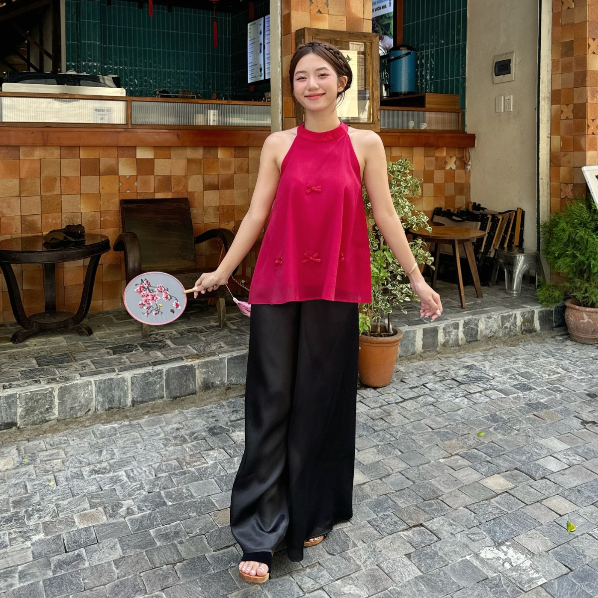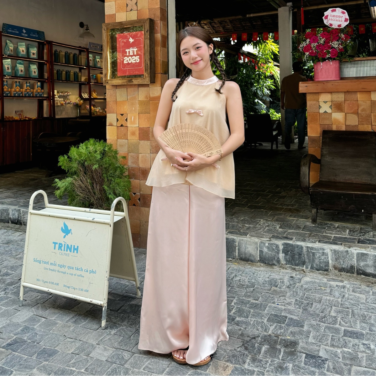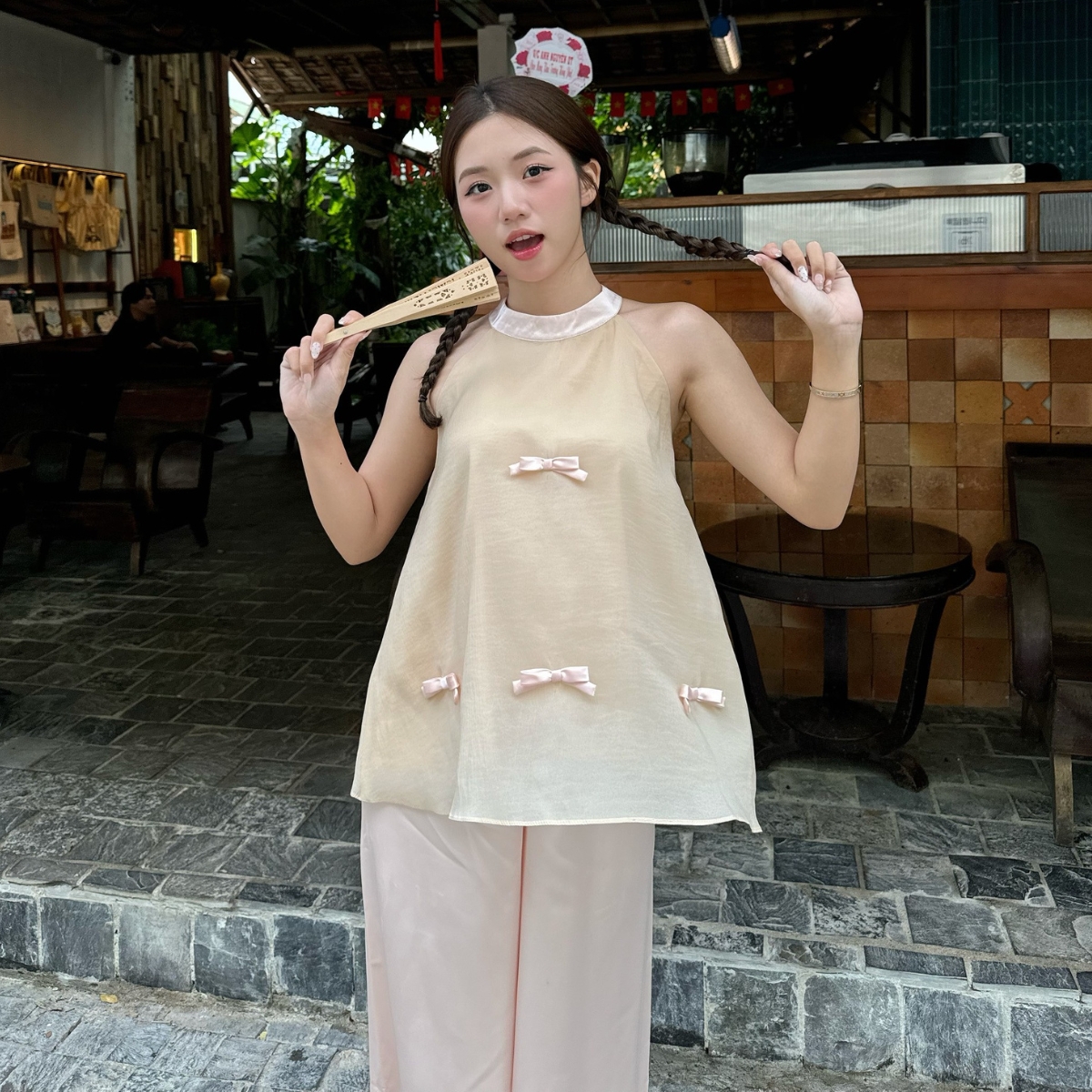 ✿ Sản phẩm : Yếm cách tân nữ chất liệu 2 lớp tơ lụa thiết kế dáng suông phối nơ trẻ trung An Nhiên Miều Est.2013
