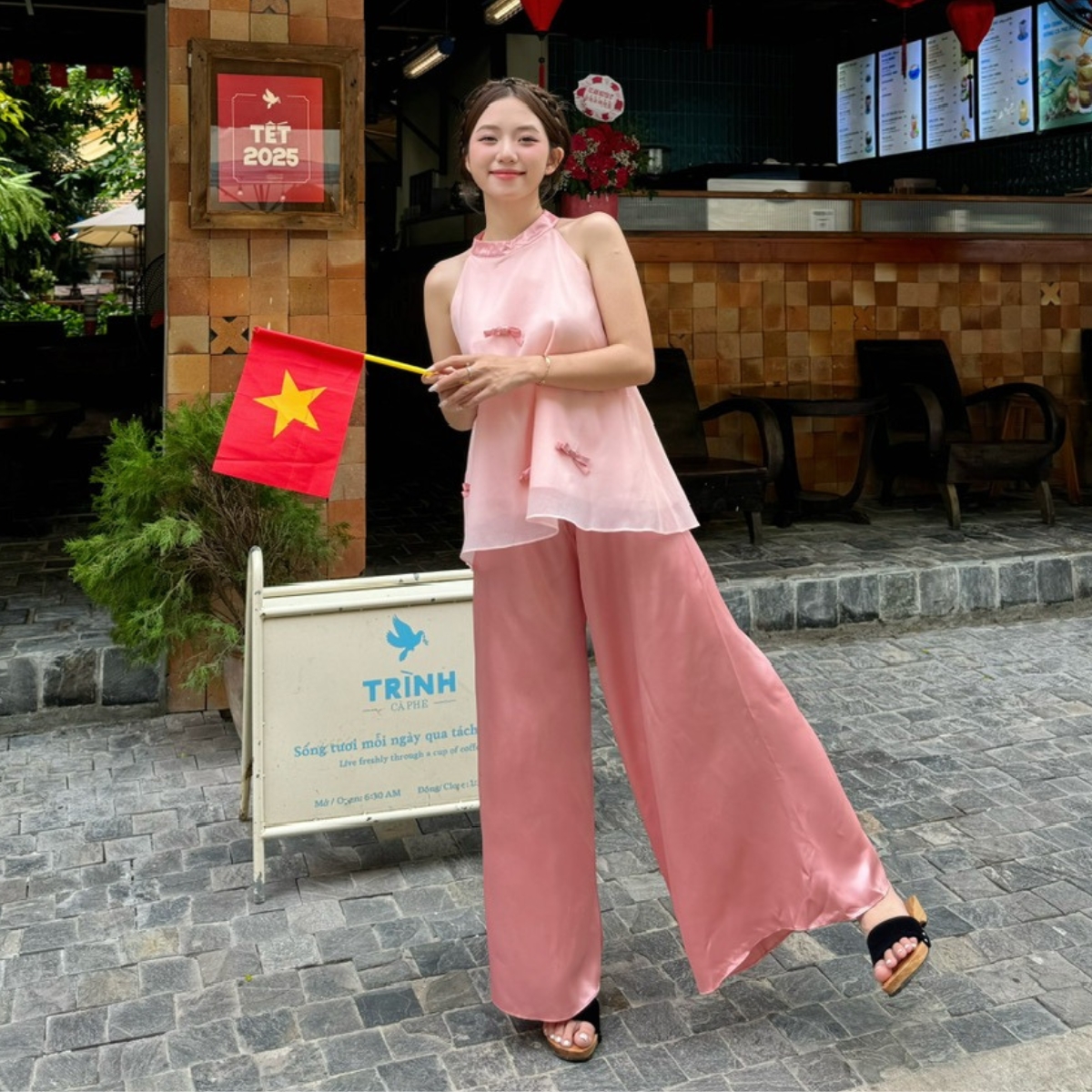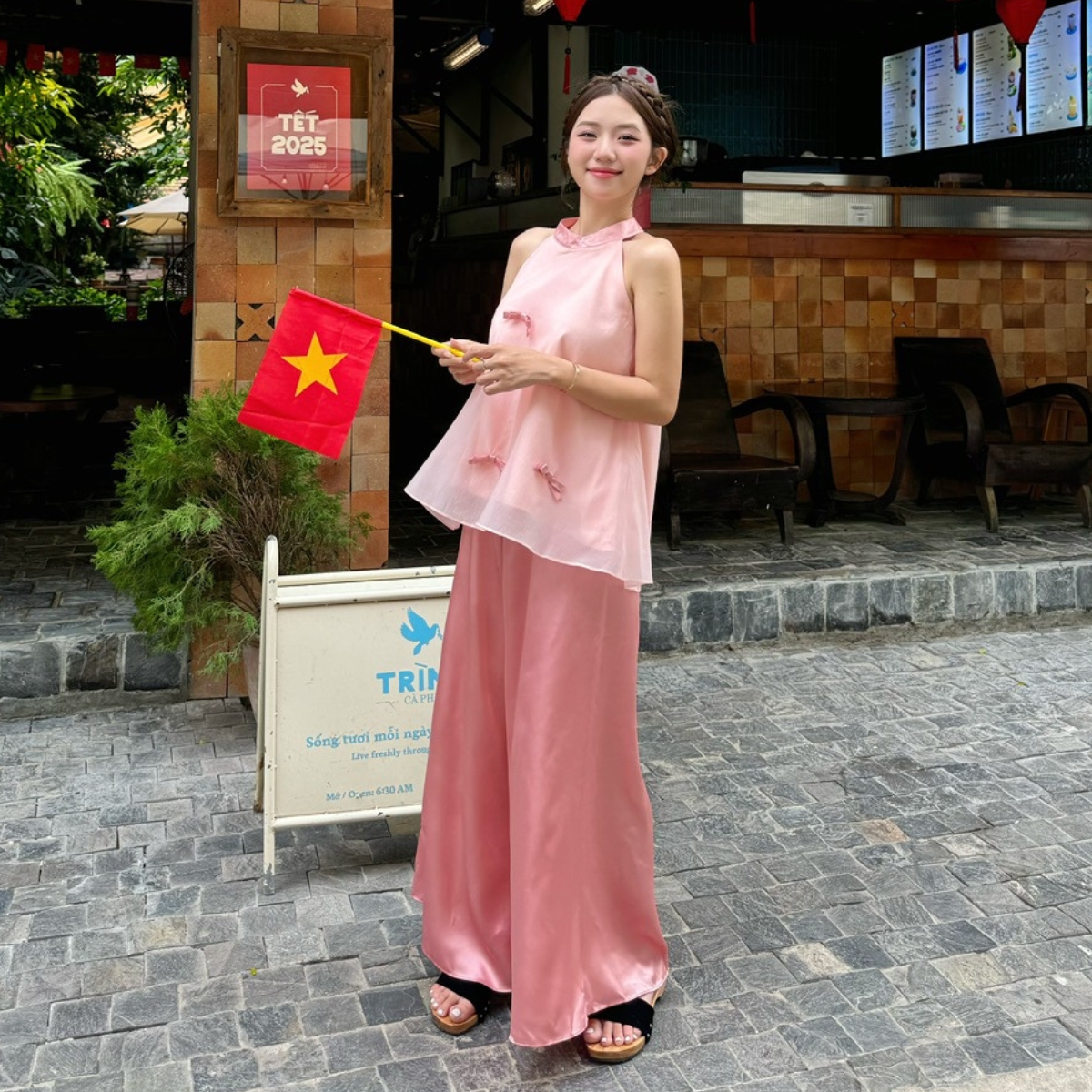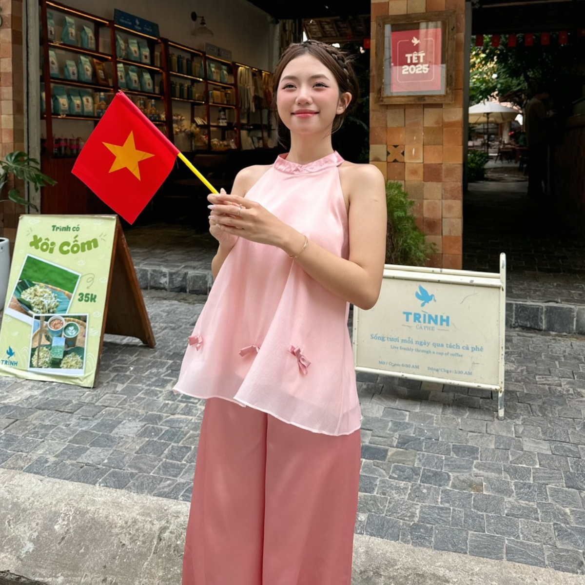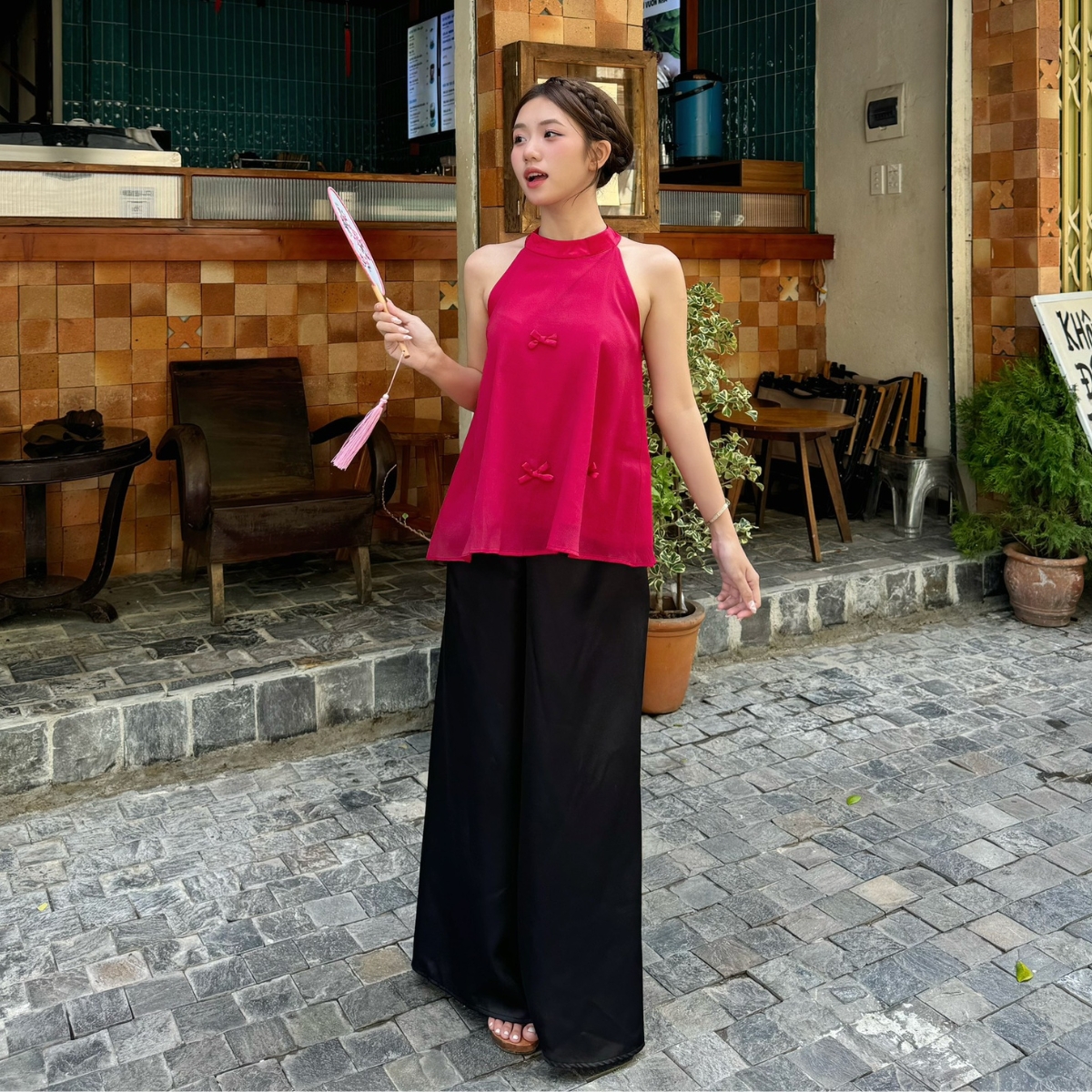✿ Sản phẩm : Yếm cách tân nữ chất liệu 2 lớp tơ lụa thiết kế dáng suông phối nơ trẻ trung An Nhiên Miều Est.2013