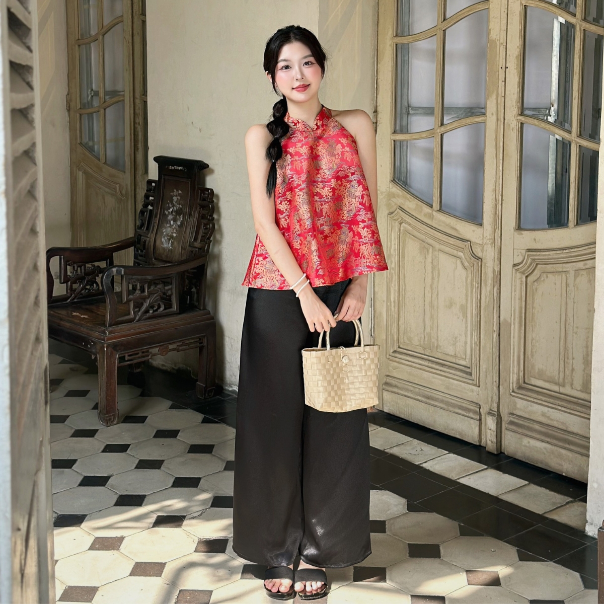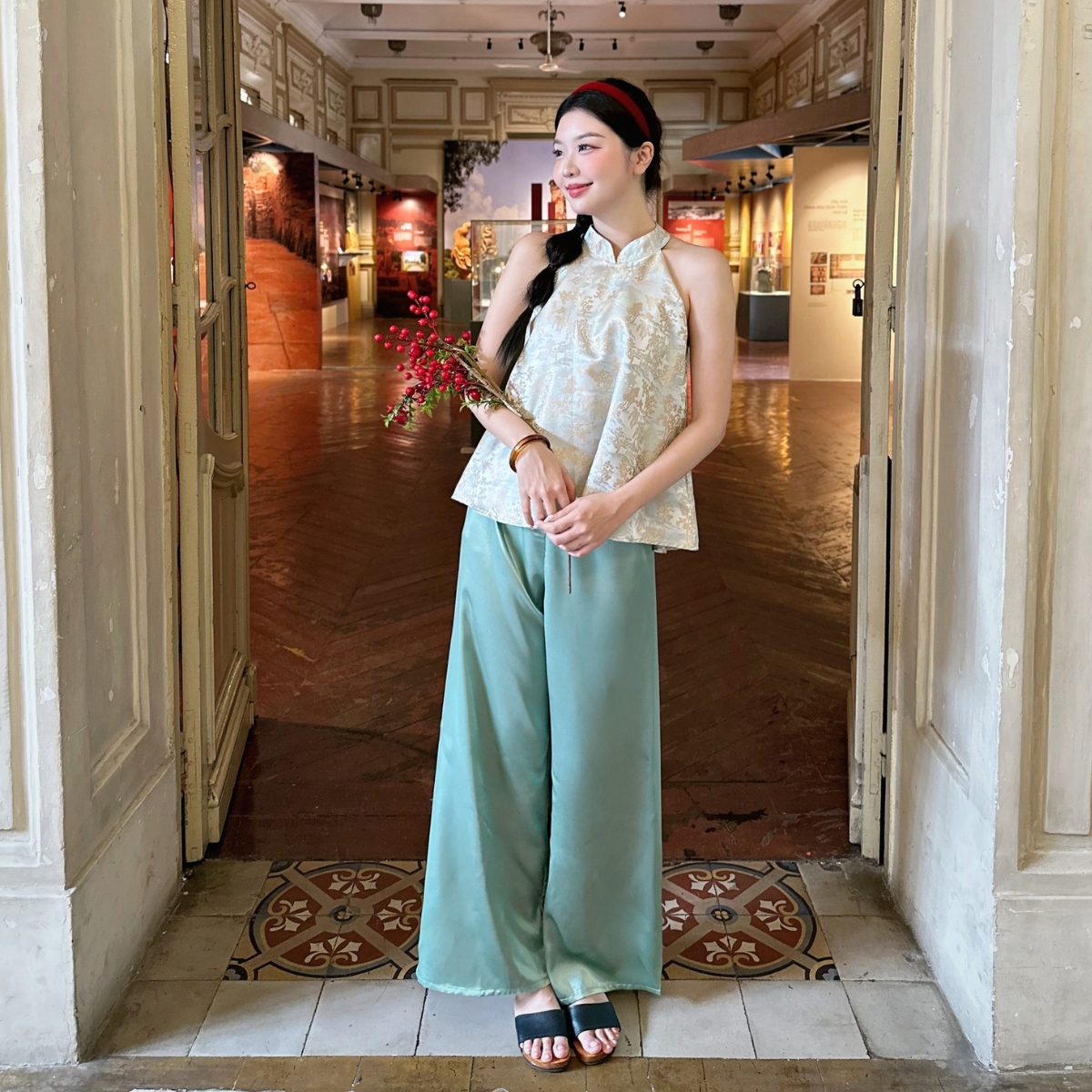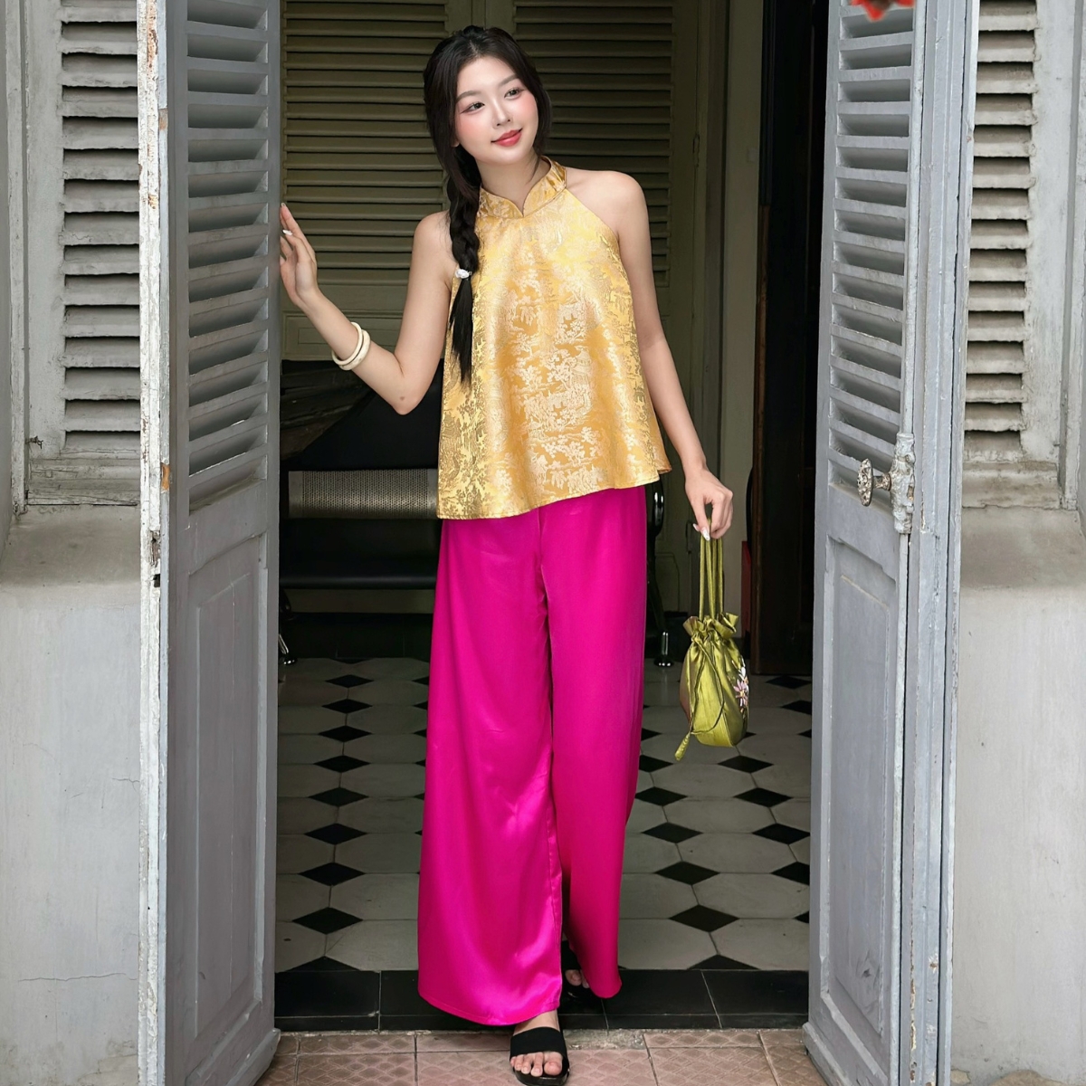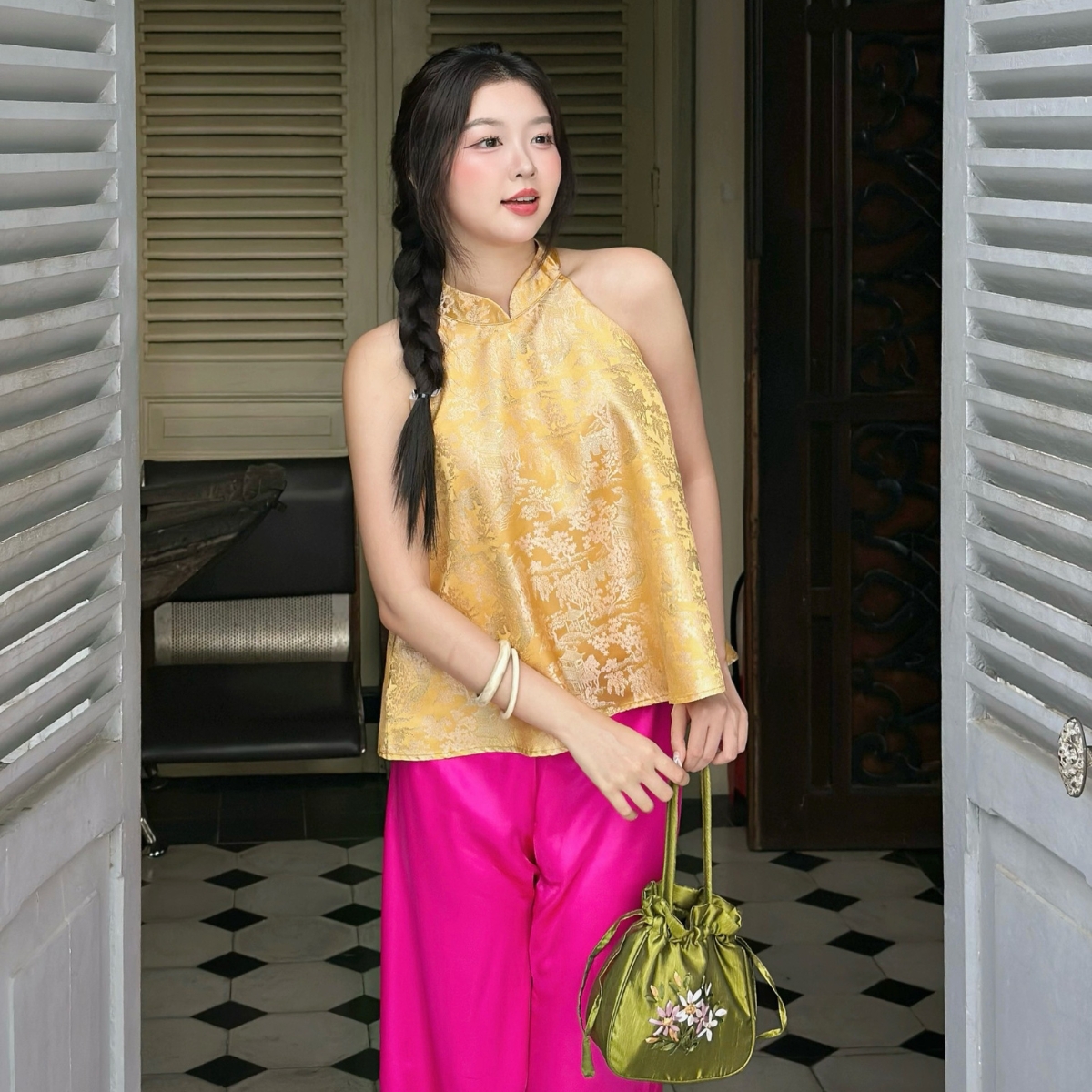 ✿ Sản phẩm : Bộ yếm cách tân nữ chất lụa gấm hoa thiết kế dáng suông cố yếm cao Phương Hoa Miều Est.2013