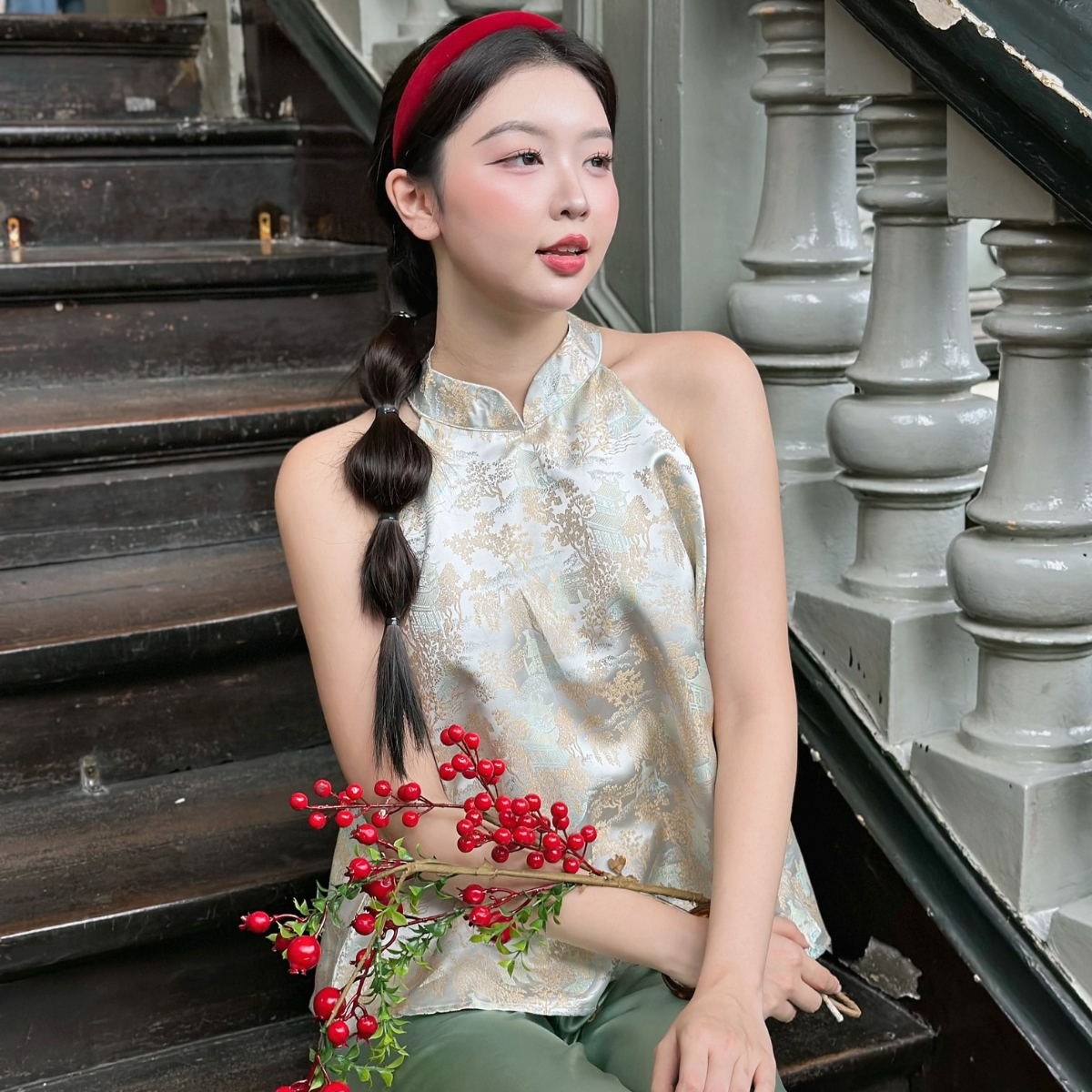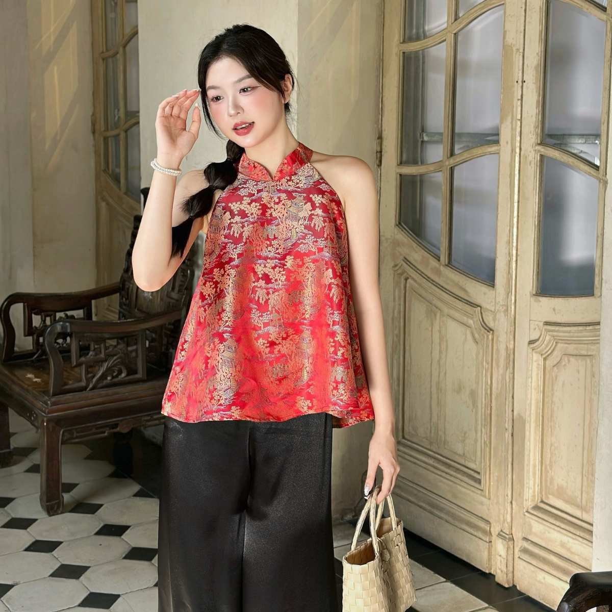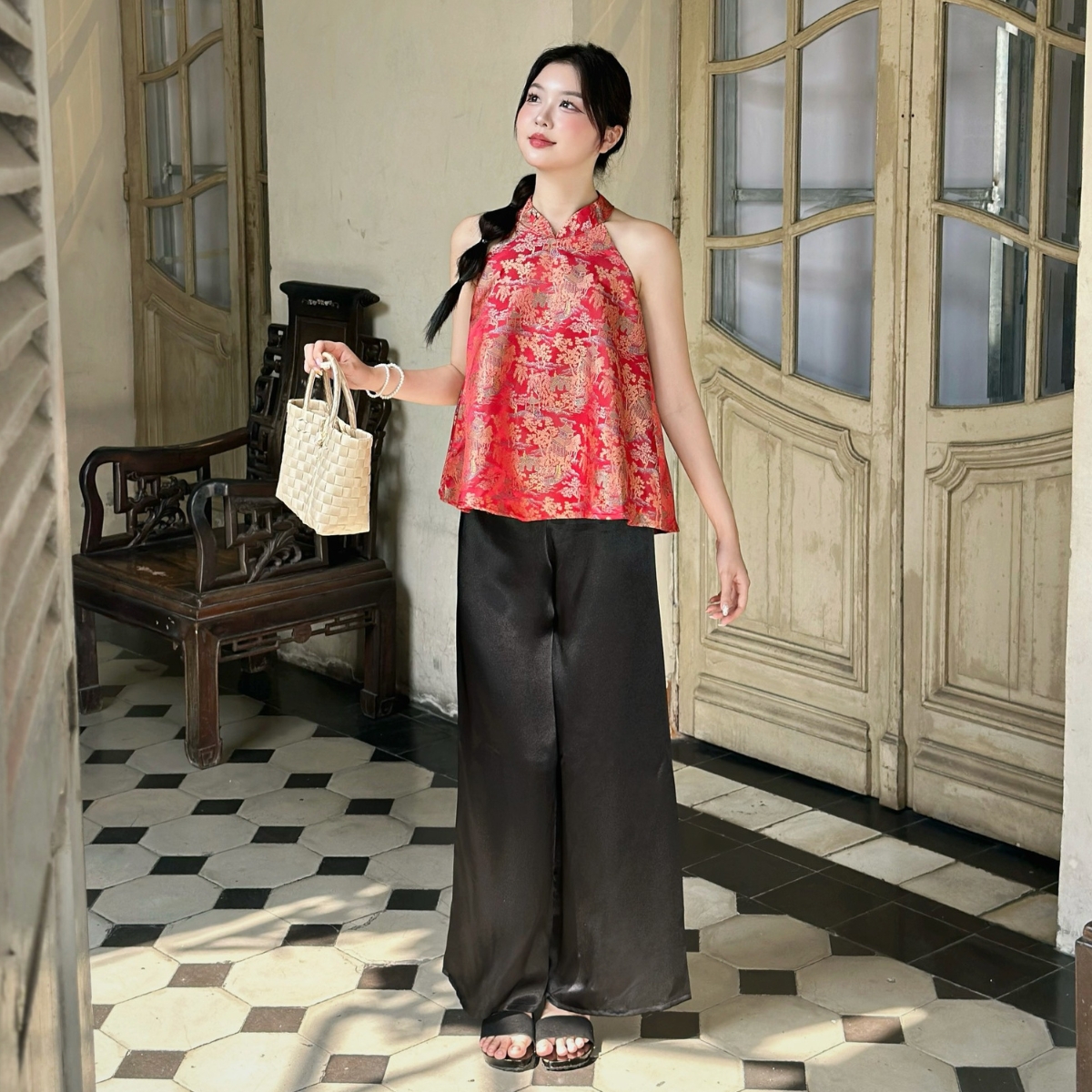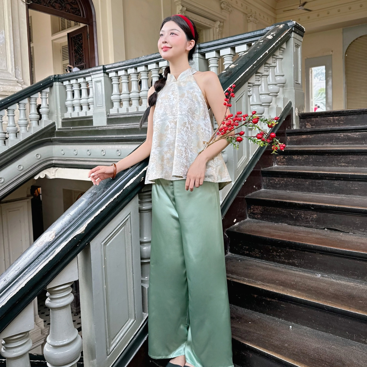 ✿ Sản phẩm : Bộ yếm cách tân nữ chất lụa gấm hoa thiết kế dáng suông cố yếm cao Phương Hoa Miều Est.2013