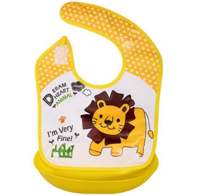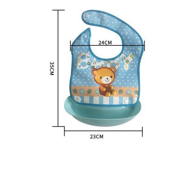 MÔ TẢ SẢN PHẨM Yếm ăn dặm có máng đựng, có thể tháo dời Phủ nhựa chống thấm PEVA thân thiện với da bé Sau khi dùng giặt sạch phơi ở nơi mát mẻ thoáng gió tránh ánh nắng trực tiếp