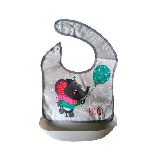 Giới thiệu Yếm máng ăn dặm Silicon tháo rời, yếm nhựa có máng hứng thức ăn cho bé trai, bé gái loại 1 hình thú Bống Bang BB