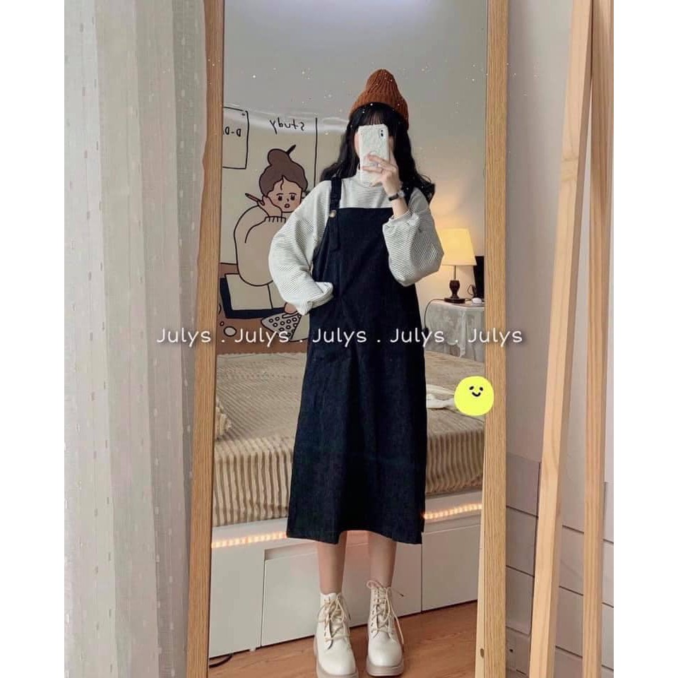 Giới thiệu yếm nhung bo chun vai chất nhung dày đẹp 2 màu ảnh thât/ yếm nhung uzzlang/ yếm cho nữ ảnh thật