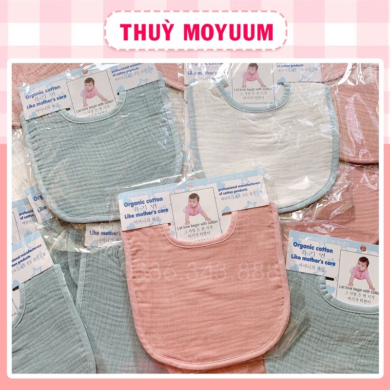 Yếm vuông handmade 6 lớp với chất liệu xô muslin organic dày dặn, mềm mịn, rất thân thiện với làn da của bé. Yếm rất tiện dụng, có thể dùng để giữ ấm ngực cho bé, dùng làm yếm ăn dặm khi cho bé ăn, cũng được dùng làm yếm dãi trong giai đoạn bé mọc răng.