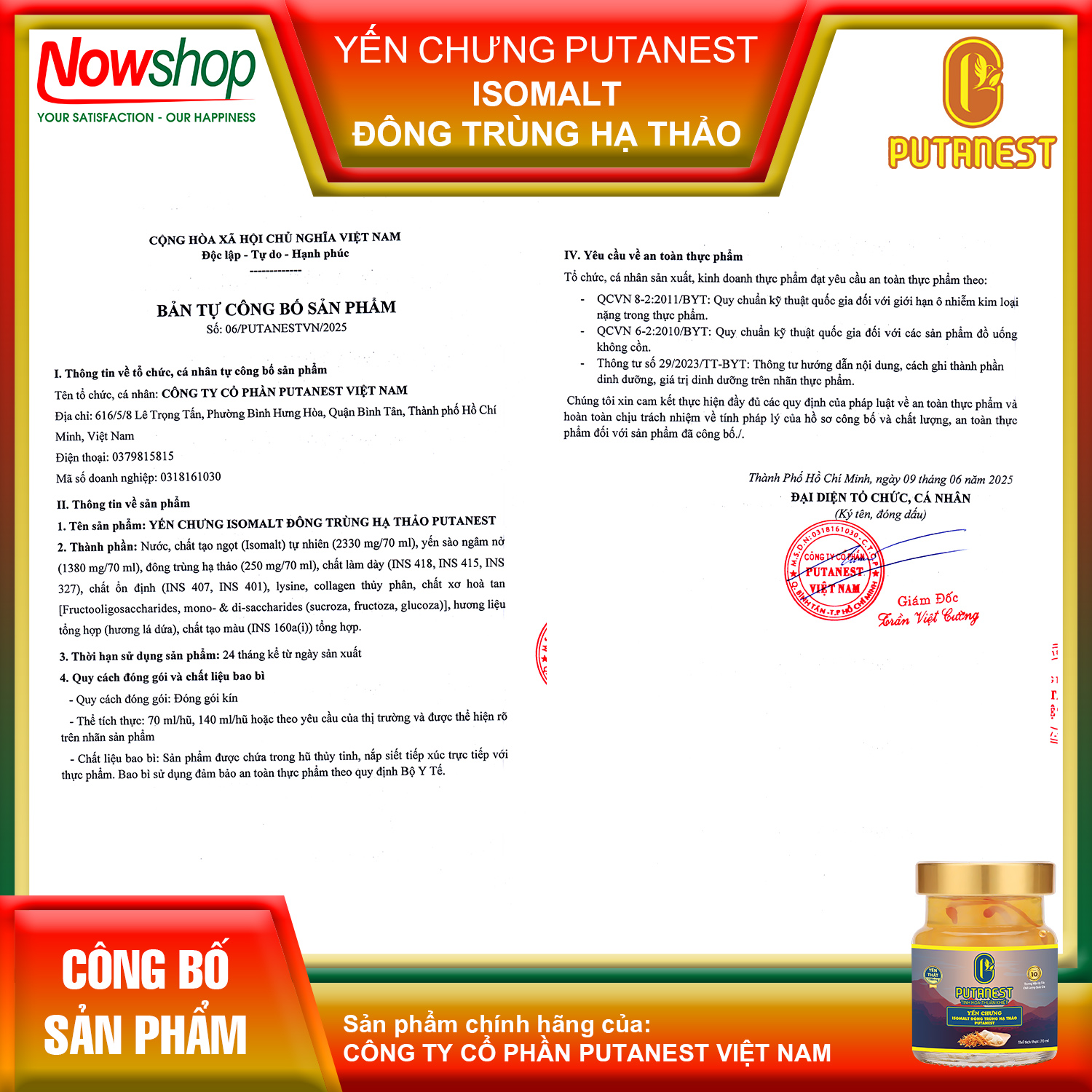 | Tên đơn vị/tổ chức chịu trách nhiệm về hàng hóa | CÔNG TY CỔ PHẦN PUTANEST VIỆT NAM |