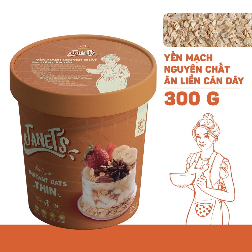 Yến mạch nguyên chất ăn liền cán dày Janet's 300g