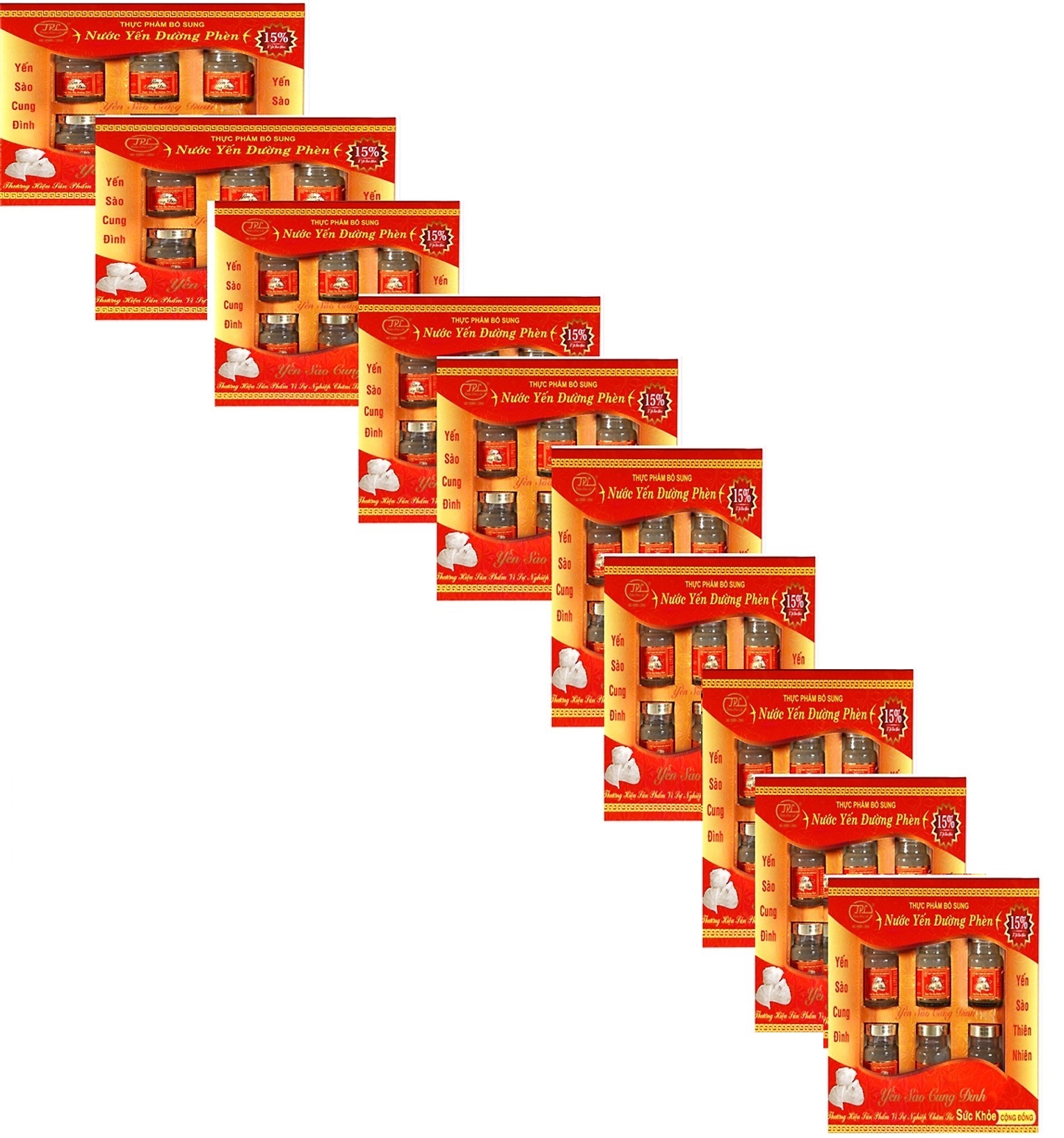 Combo gồm 10 hộp nước yến sào đường phèn (1 hộp 6 hũ, mỗi hũ 70ml)