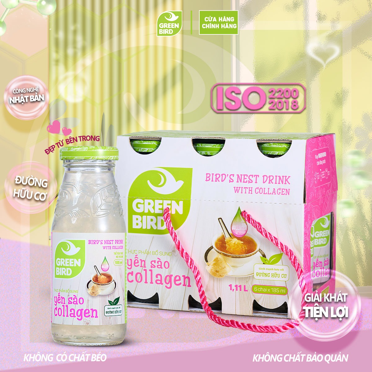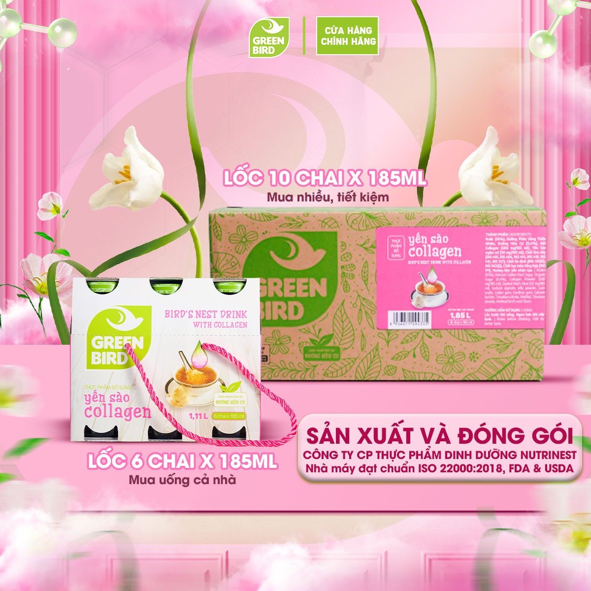 Nước Yến Sào Và Collagen Green Bird Thanh Mát Cơ Thể Chai 185ml