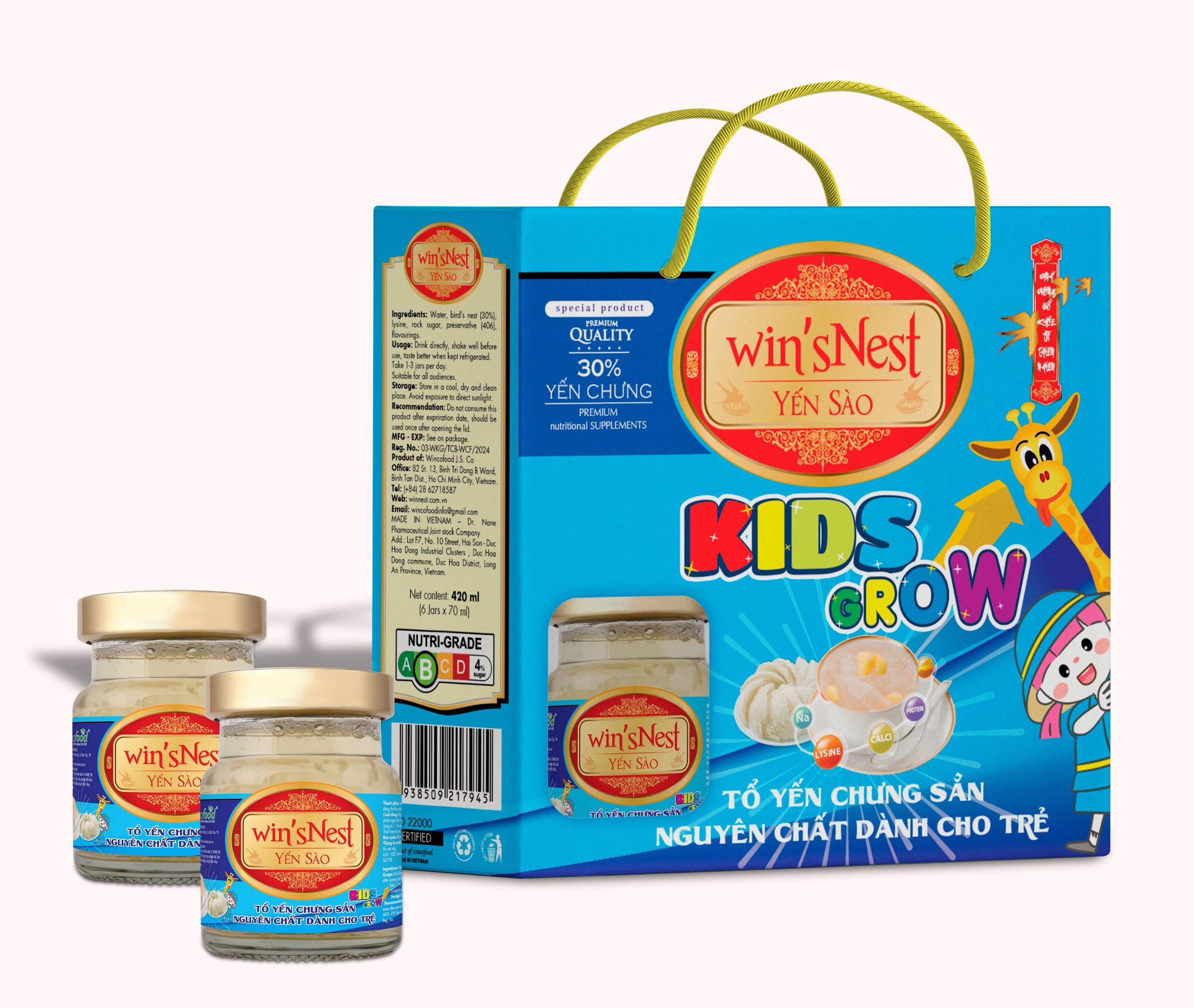 Lốc 6 lọ (30%) Yến sào cao cấp win'sNest KIDS GROW tổ yến chưng sẵn dành cho trẻ em (420ml/lốc)