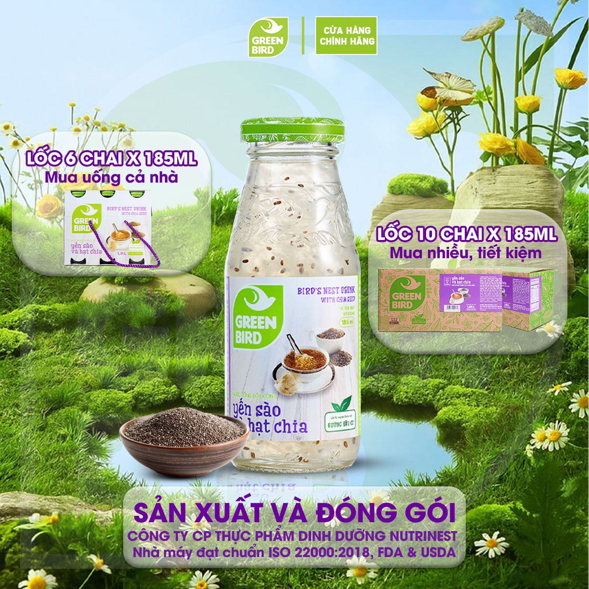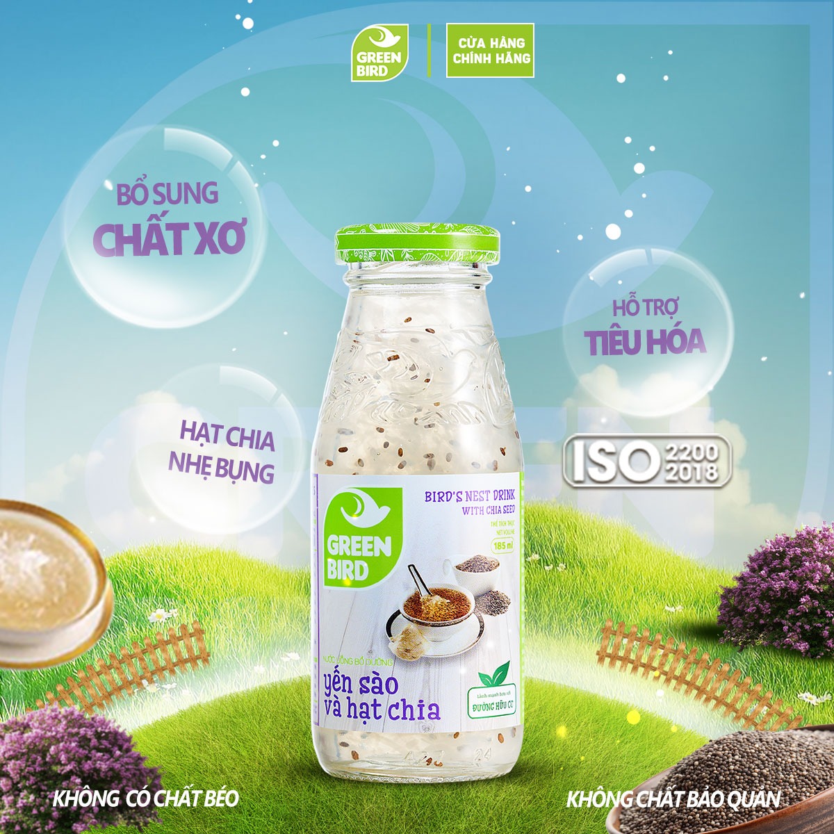 Nước Yến Và Hạt Chia Green Bird Thanh Mát Ngọt Nhẹ Chai 185ml