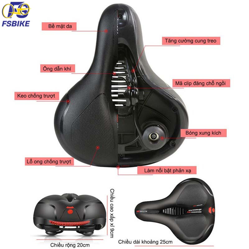 GIỚI THIỆU CHI TIẾT VỀ YÊN XE BỌC DA THOÁNG KHÍ CÓ ĐÈN PHÁT QUANG FSBIKE.